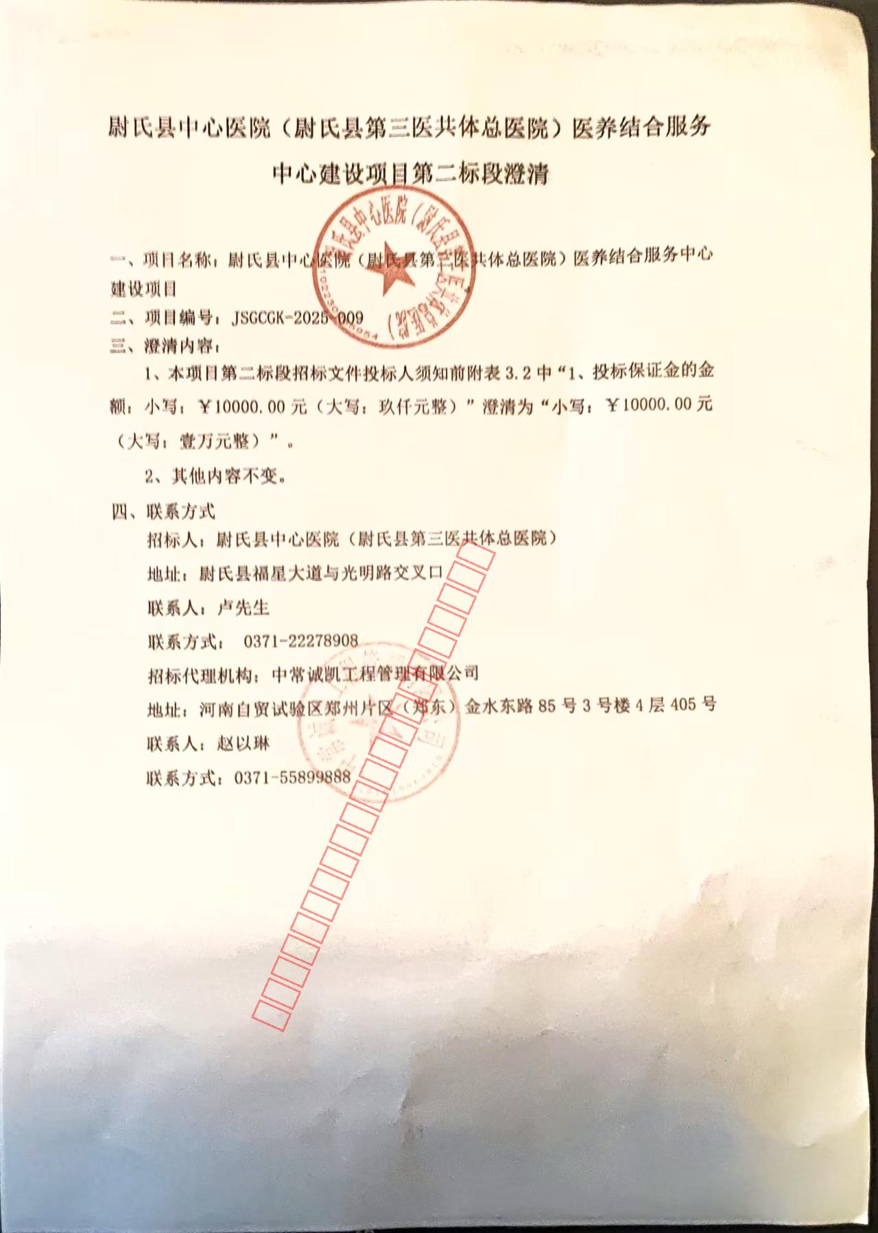 尉氏县中心医院(尉氏县第三医共体总医院)医养结合服务中心建设项目第二标段澄清