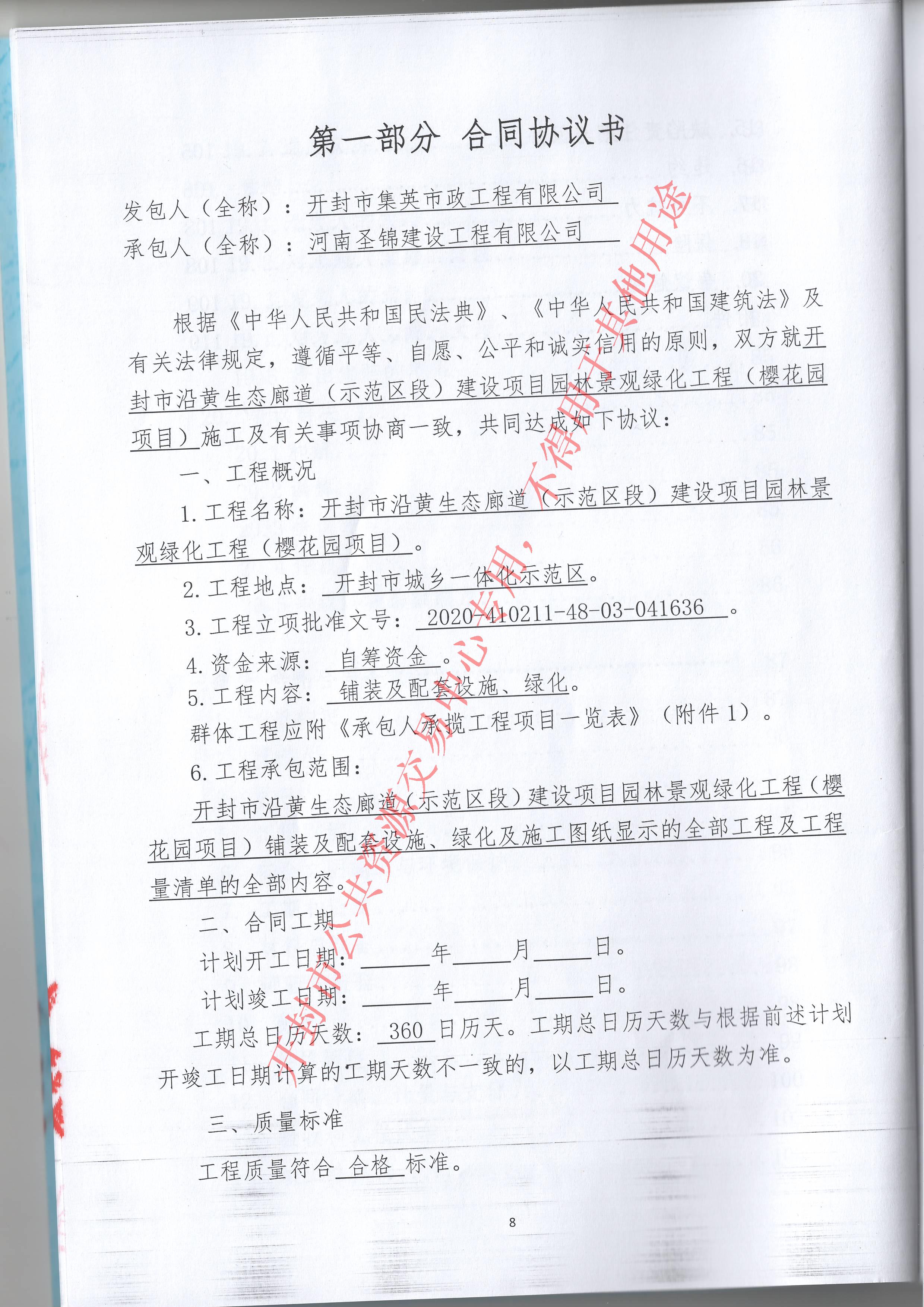 开封市沿黄生态廊道(示范区段)建设项目园林景观绿化工程(樱花园项目)_中标合同