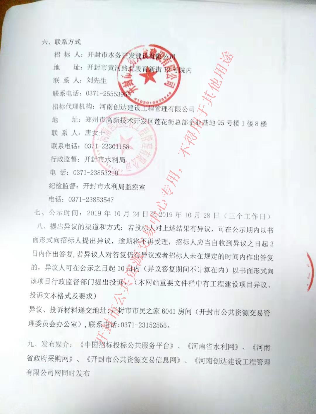 九、发布媒介:《中国招标投标公共服务平台》、《河南省水利网》、《河南省政府采购网》、《开封市公共资源交易信息网》、《河南创达建设工程管理有限公司网同时发布