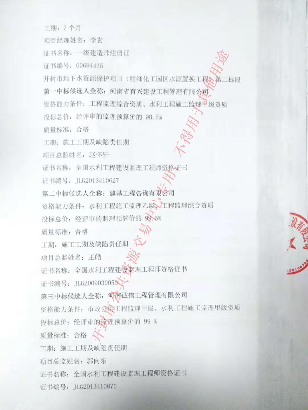 第一中标候选人全称:河南省育兴建设工程管理有限公司