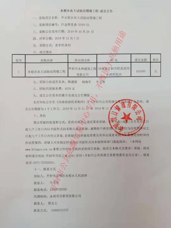 水稻乡农大试验站围墙工程-成交公告