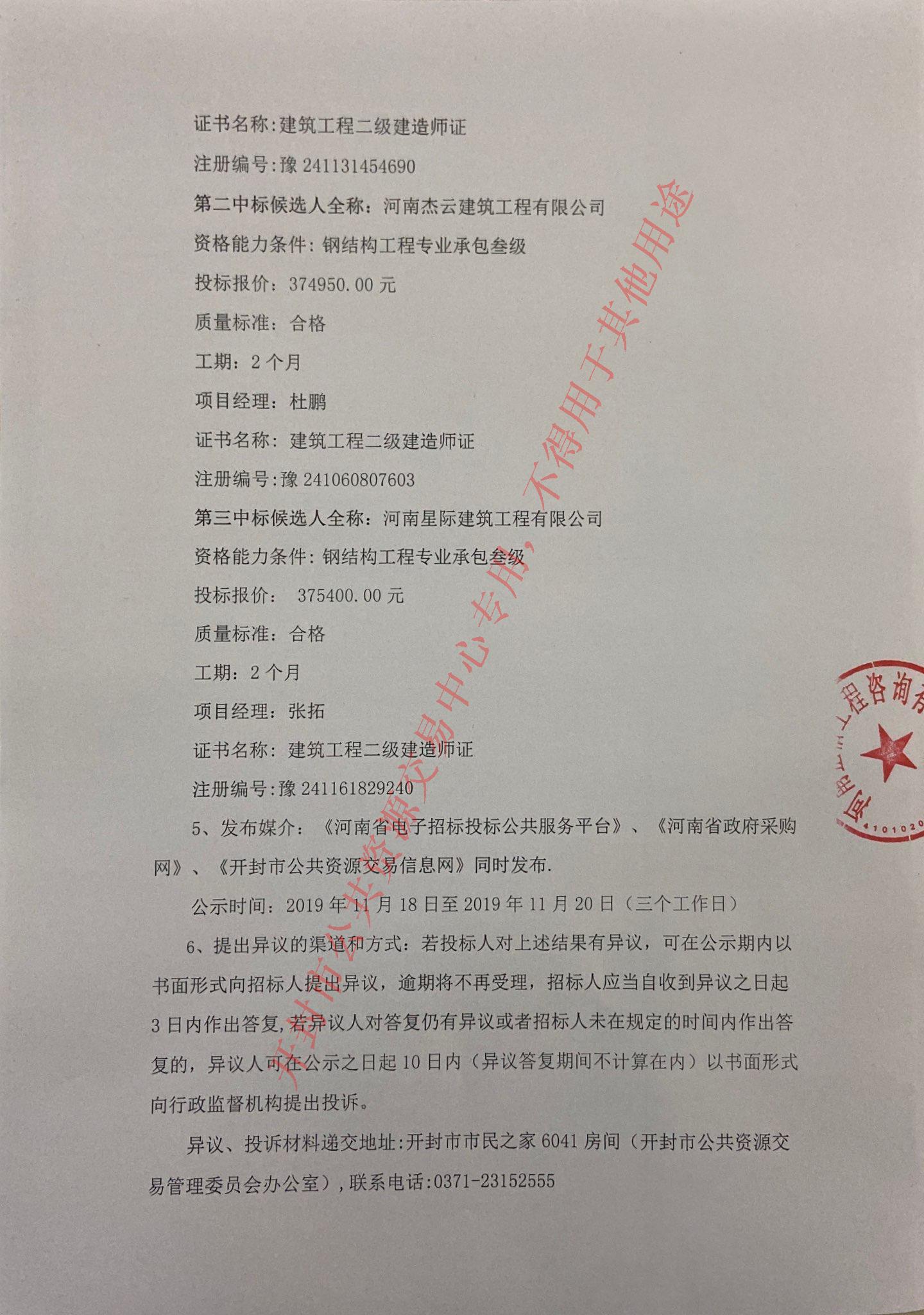 第三中标候选人全称:河南星际建筑工程有限公司