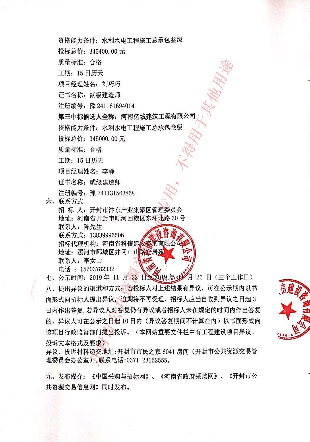 第一中标候选人全称:河南省旭创水利工程有限公司