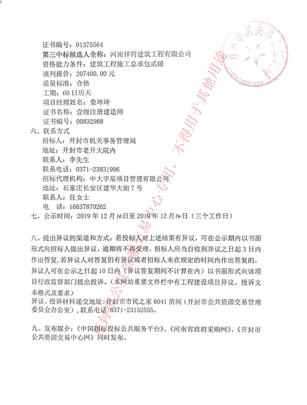 第三中标候选人全称:河南祥符建筑工程有限公司