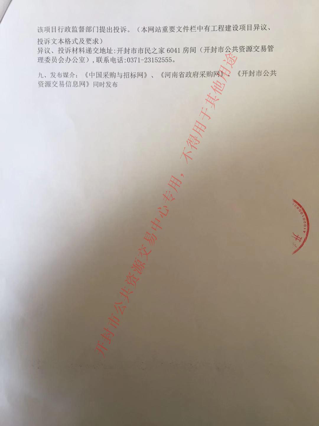 九、发布媒介:《中国采购与招标网》、《河南省政府采购网》、《开封市公共资源交易信息网》同时发布