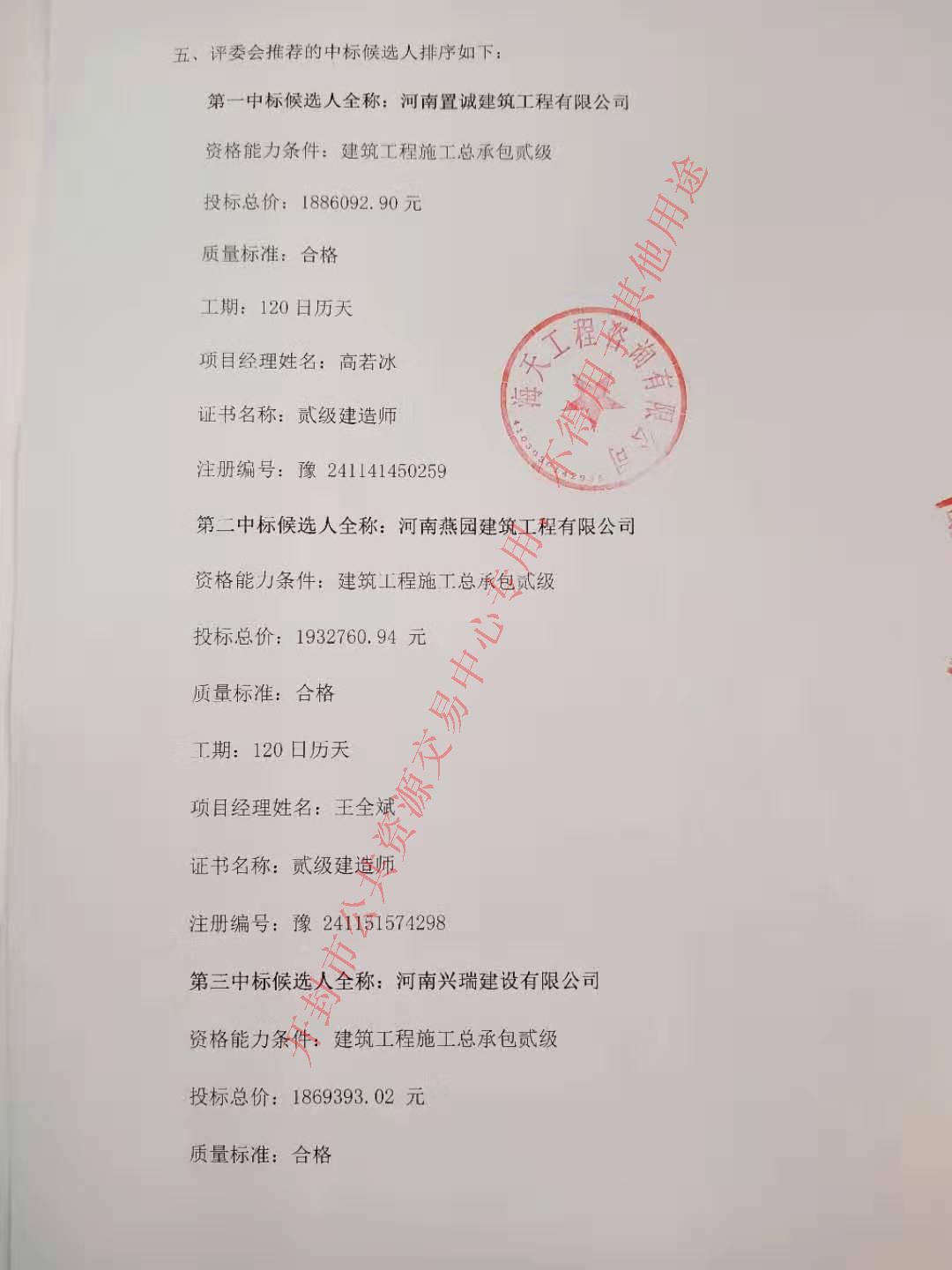第一中标候选人全称:河南置诚建筑工程有限公司
