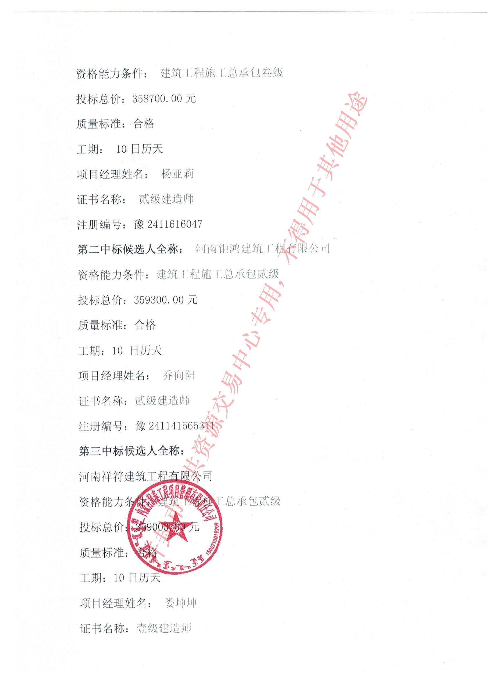 第二中标候选人全称: 河南钜鸿建筑工程有限公司