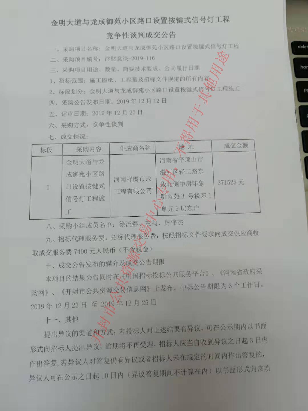 本项目的结果公告同时在《中国招标投标公共服务平台》、《河南省政府采购网》、《开封市公共资源交易信息网》上发布。中标公告期限为3个工作日。2019年12月23日 至 2019年12月25日