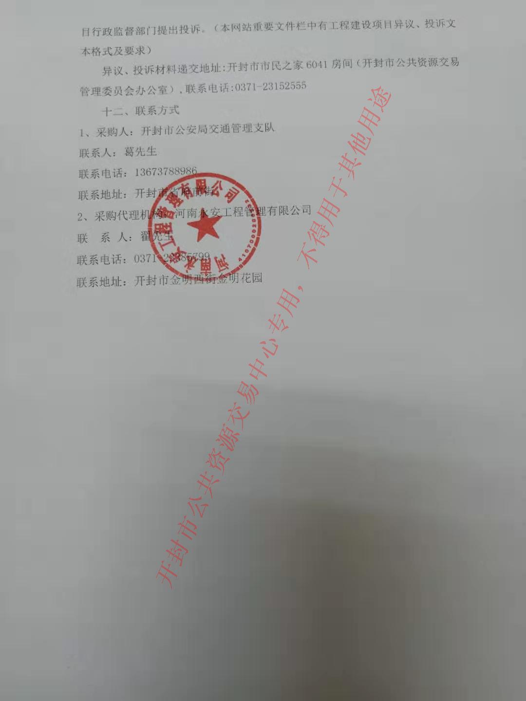 异议、投诉材料递交地址:开封市市民之家6041房间(开封市公共资源交易管理委员会办公室),联系电话:0371-23152555