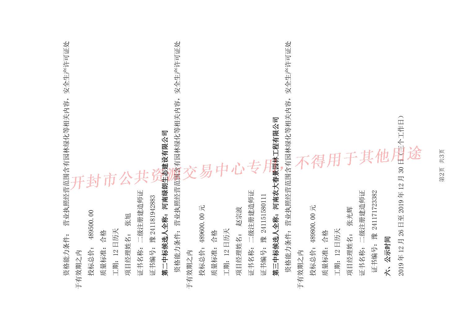 第三中标候选人全称:河南农大春景园林工程有限公司