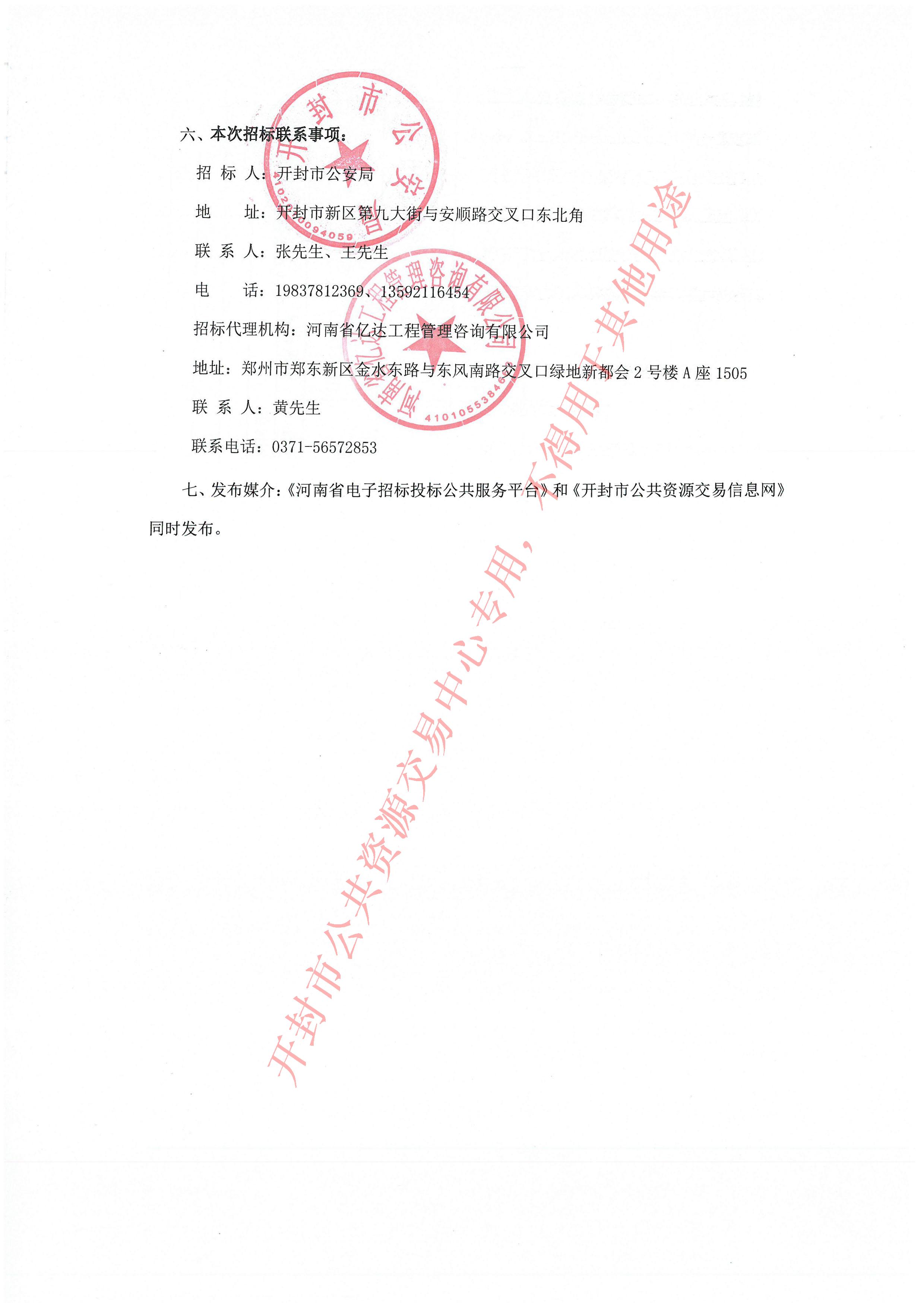 七、发布媒介:《河南省电子招标投标公共服务平台》和《开封市公共资源交易信息网》同时发布。