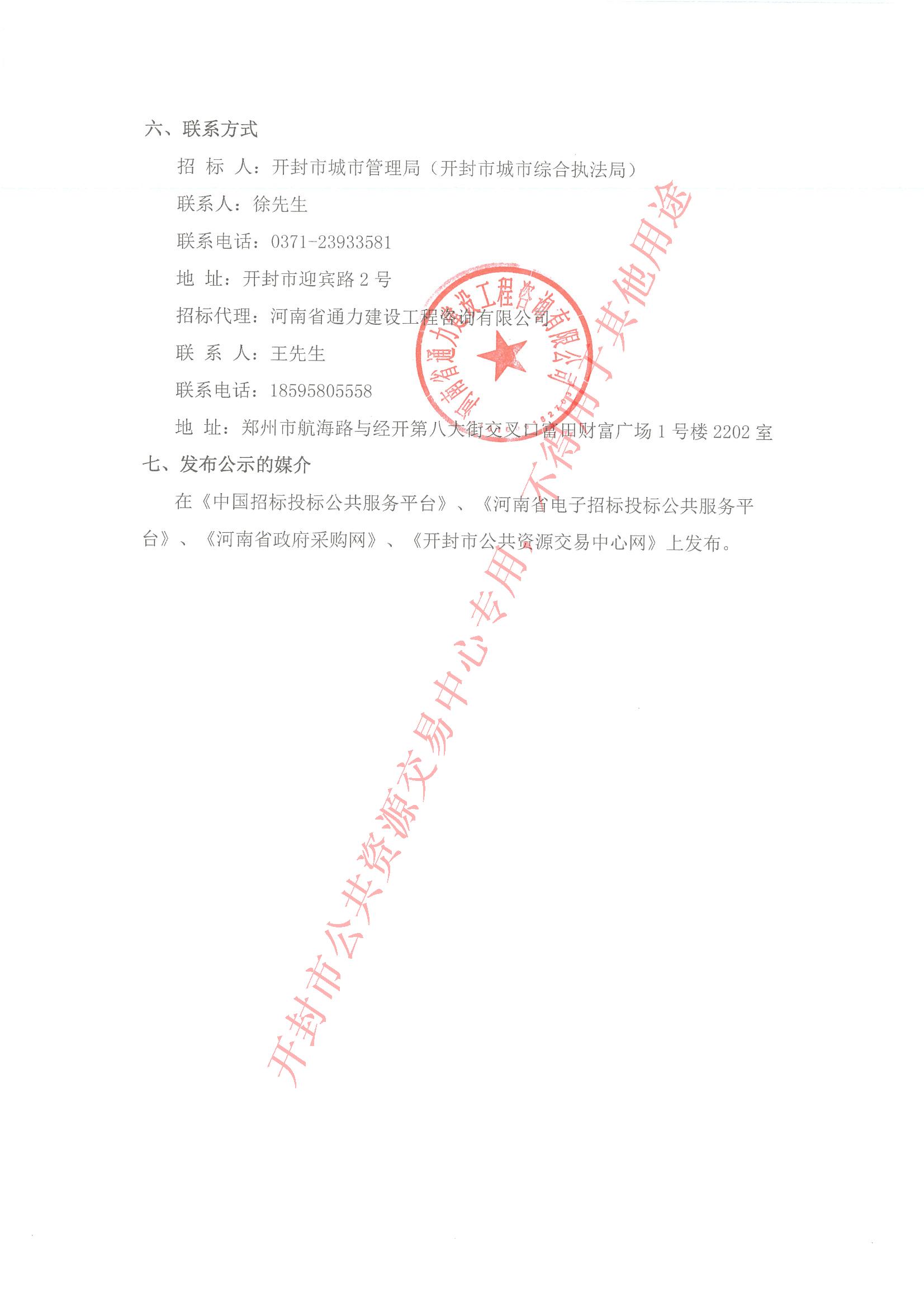 在《中国招标投标公共服务平台》、《河南省电子招标投标公共服务平台》、《河南省政府采购网》、《开封市公共资源交易中心网》上发布。