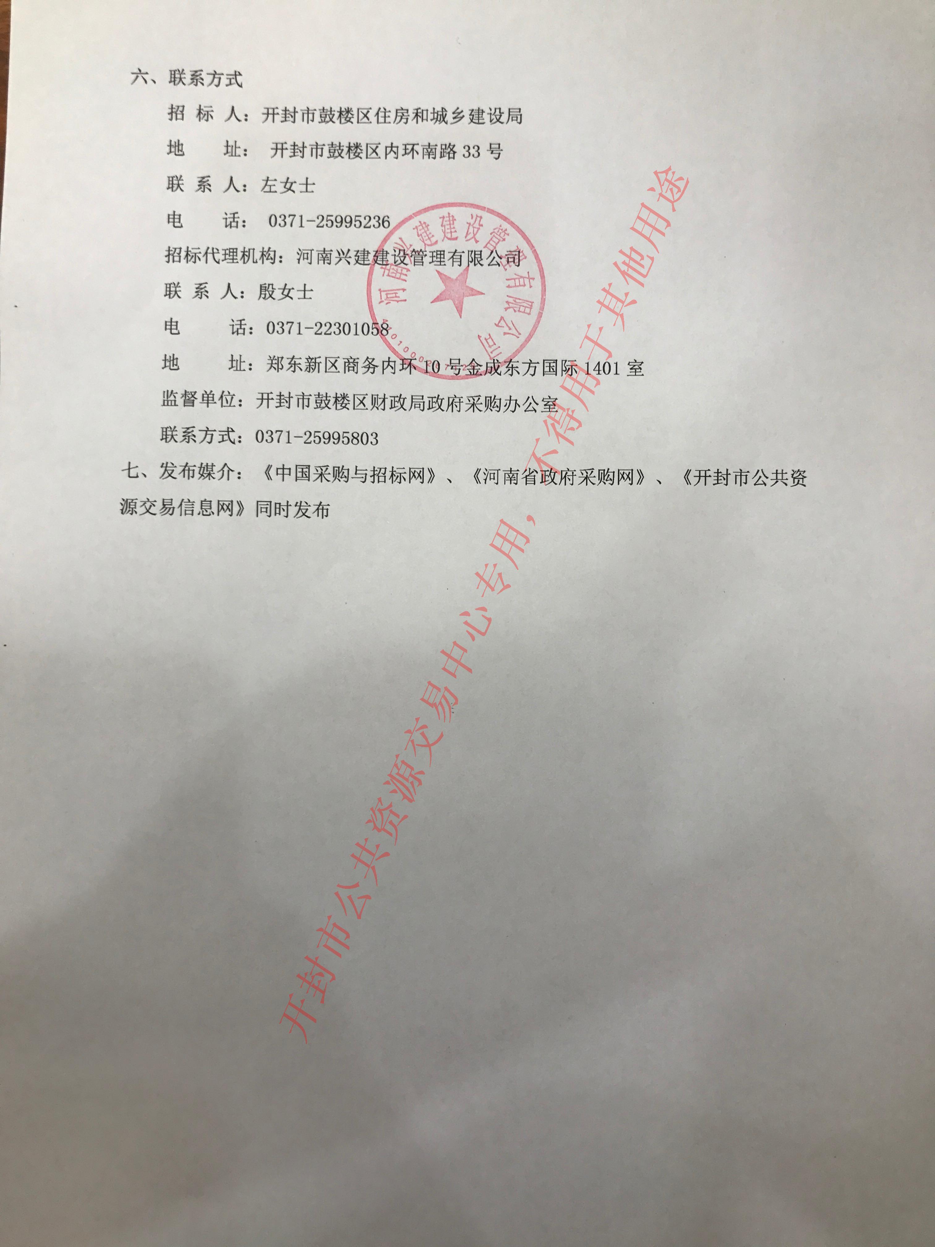 七、发布媒介:《中国采购与招标网》、《河南省政府采购网》、《开封市公共资源交易信息网》同时发布