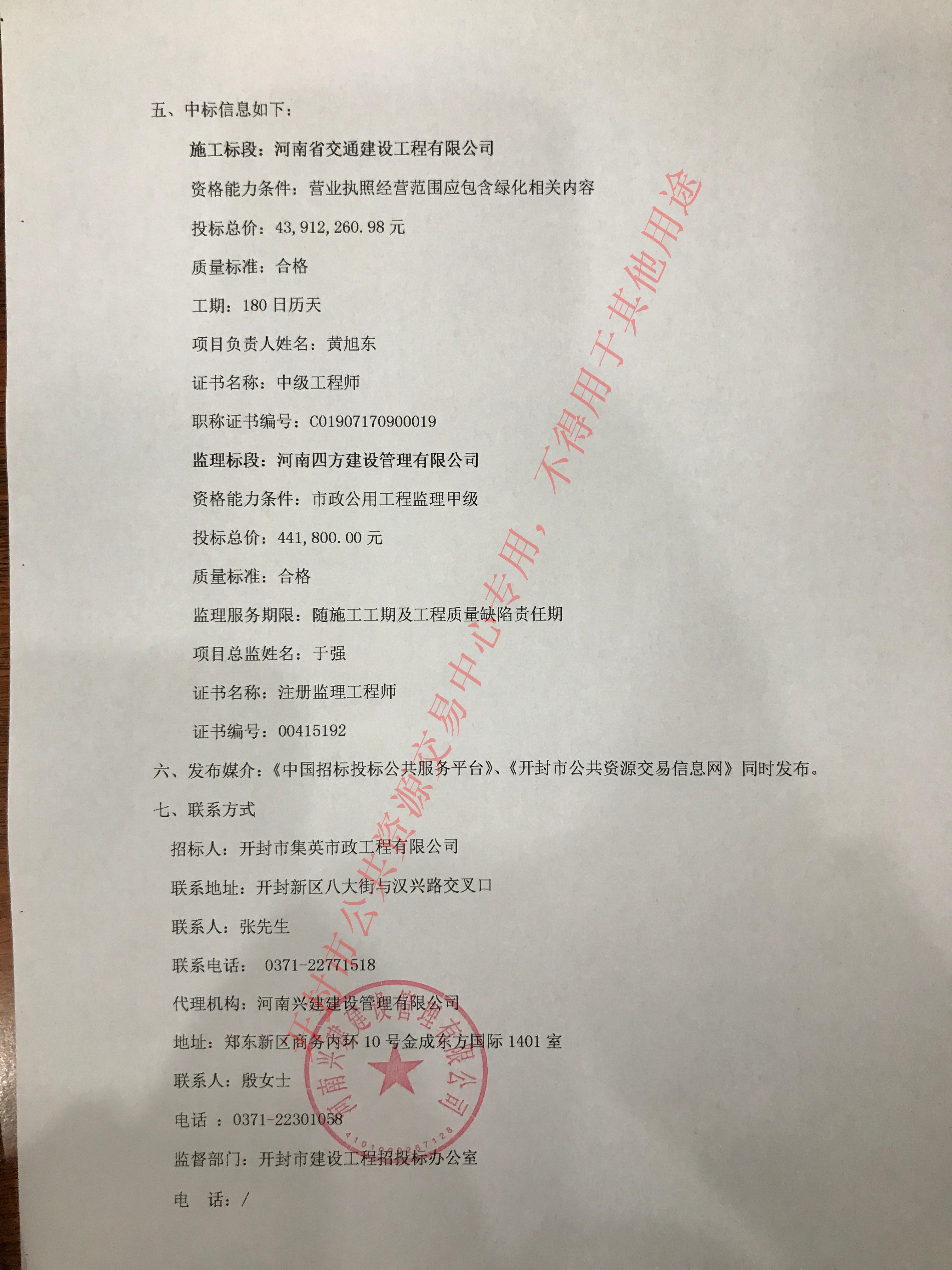 六、发布媒介:《中国招标投标公共服务平台》、《开封市公共资源交易信息网》同时发布。