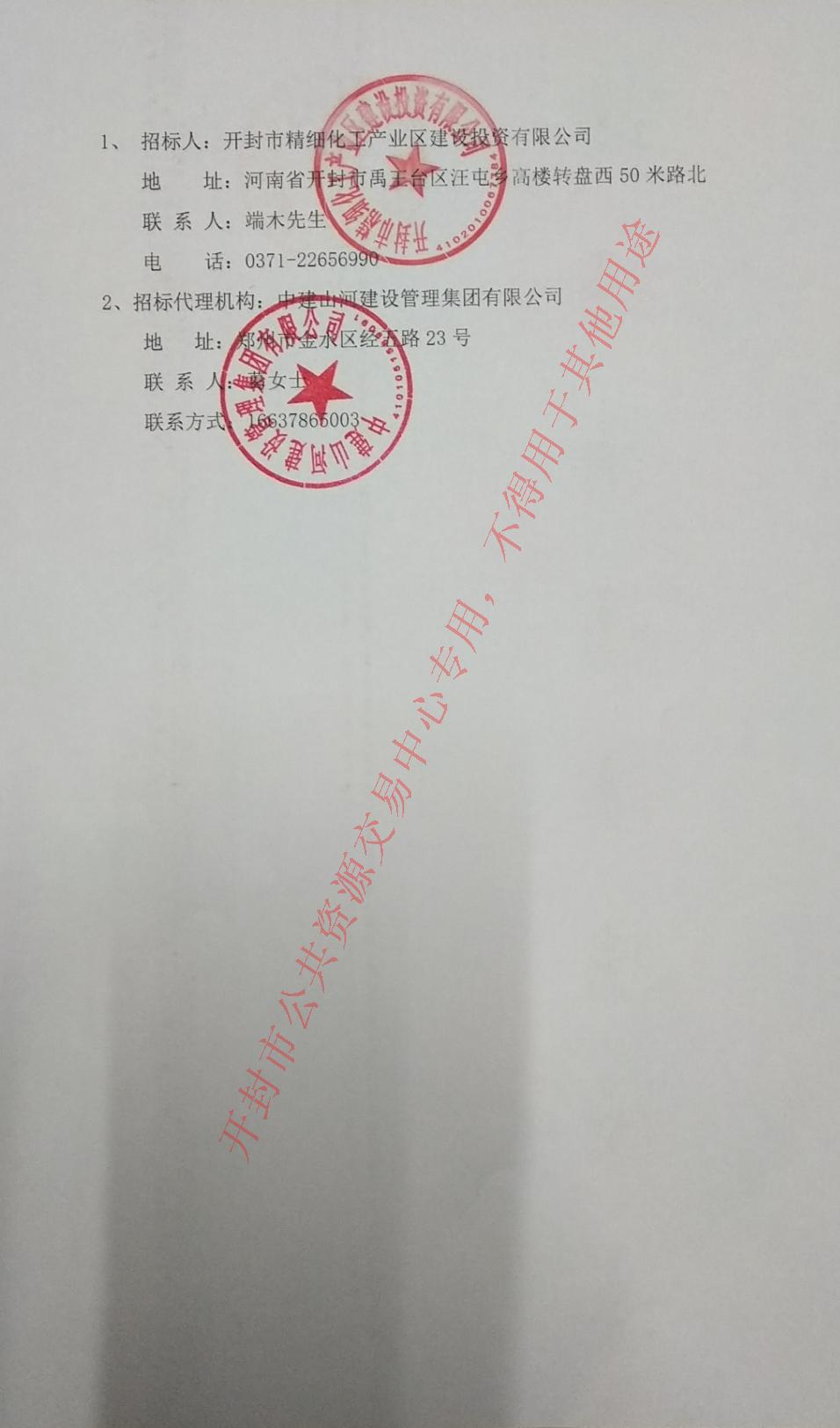 1、招标人:开封市精细化工产业区建设投资有限公司