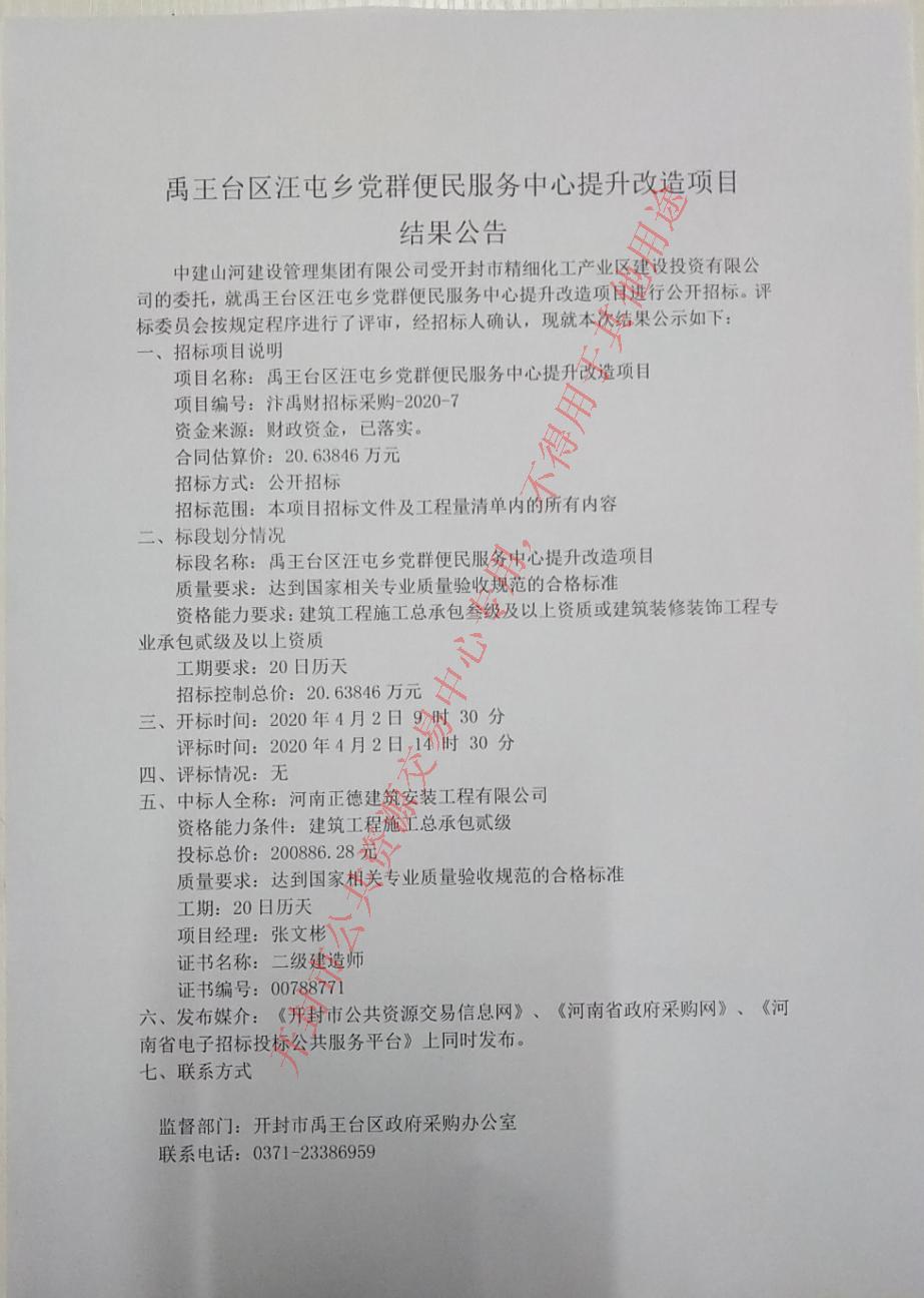 标段名称:禹王台区汪屯乡党群便民服务中心提升改造项目