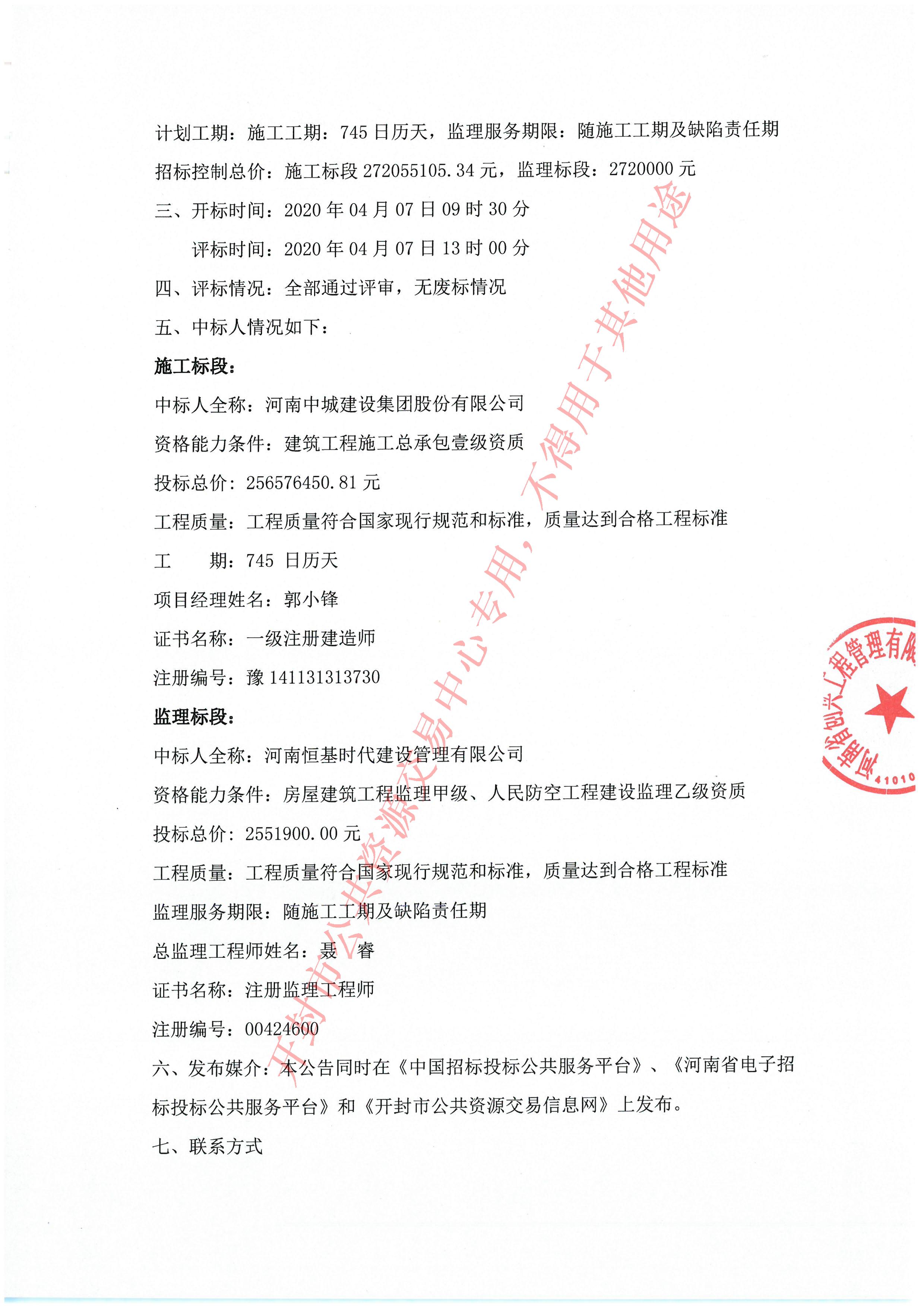 六、发布媒介:本公告同时在《中国招标投标公共服务平台》、《河南省电子招标投标公共服务平台》和《开封市公共资源交易信息网》上发布。