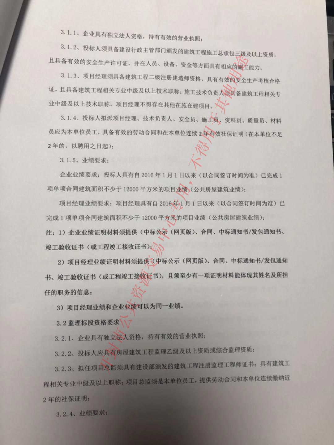 企业业绩要求:投标人具有自2016年1月1日以来(以合同签订时间为准)已完成1项单项合同建筑面积不少于12000平方米的项目业绩(公共房屋建筑业绩);