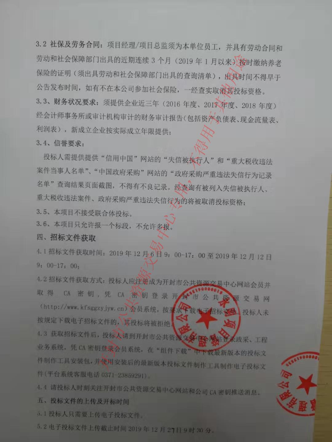 4.2招标文件获取方式:投标人应注册成为开封市公共资源交易中心网站会员并取得 CA密钥,凭CA密钥登录开封市公共资源交易网(http://www.kfsggzyjyw.cn)会员系统,按要求下载电子招标文件。投标人未按规定下载电子招标文件的,其投标将被拒绝。