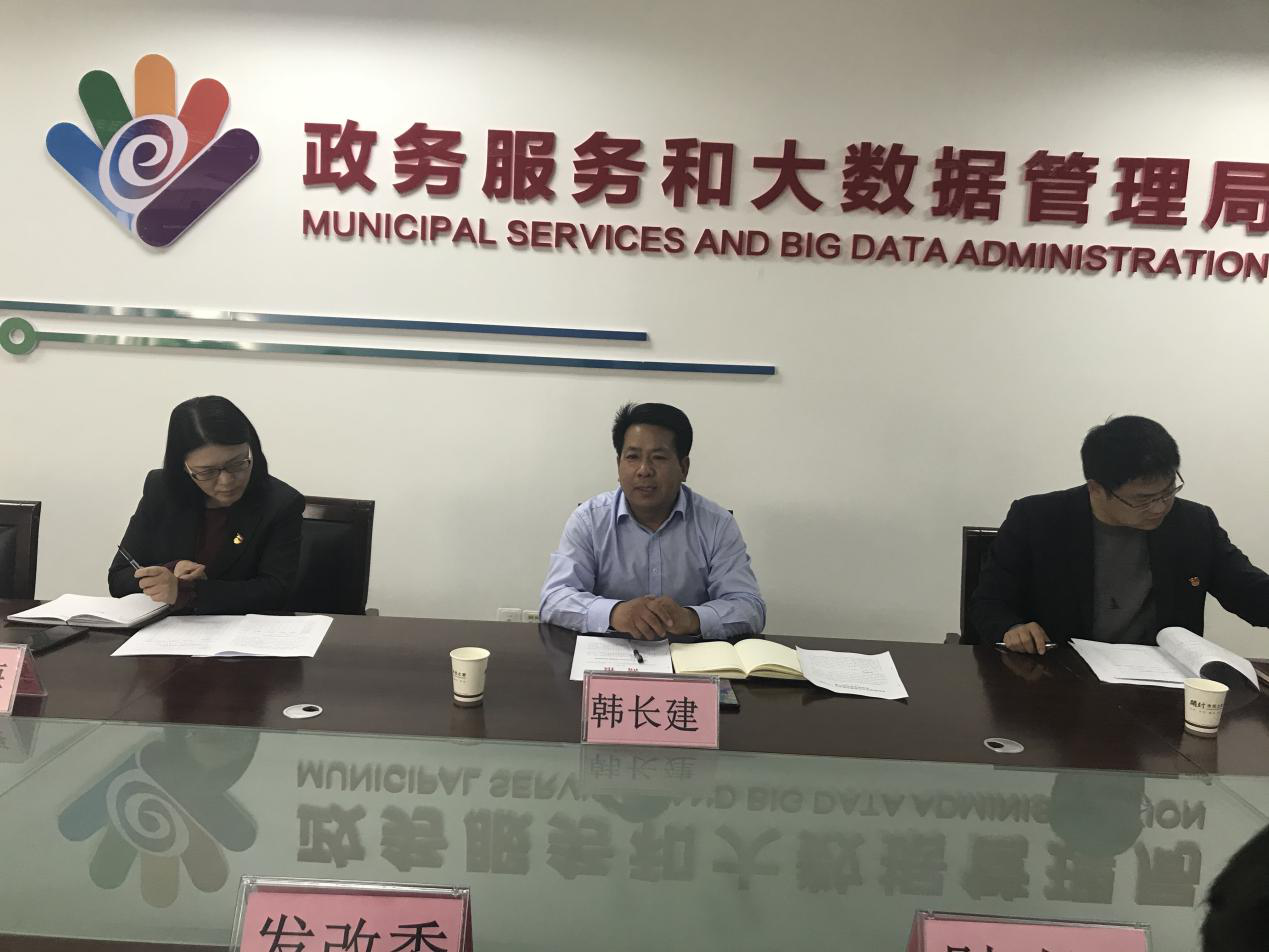 市政务服务和大数据管理局(公管办)副局长韩长建、市公共资源交易服务处全体人员、市公共资源交易中心主要负责人、市公管办各进驻科室科长参加会议,会议由韩长建副局长主持。