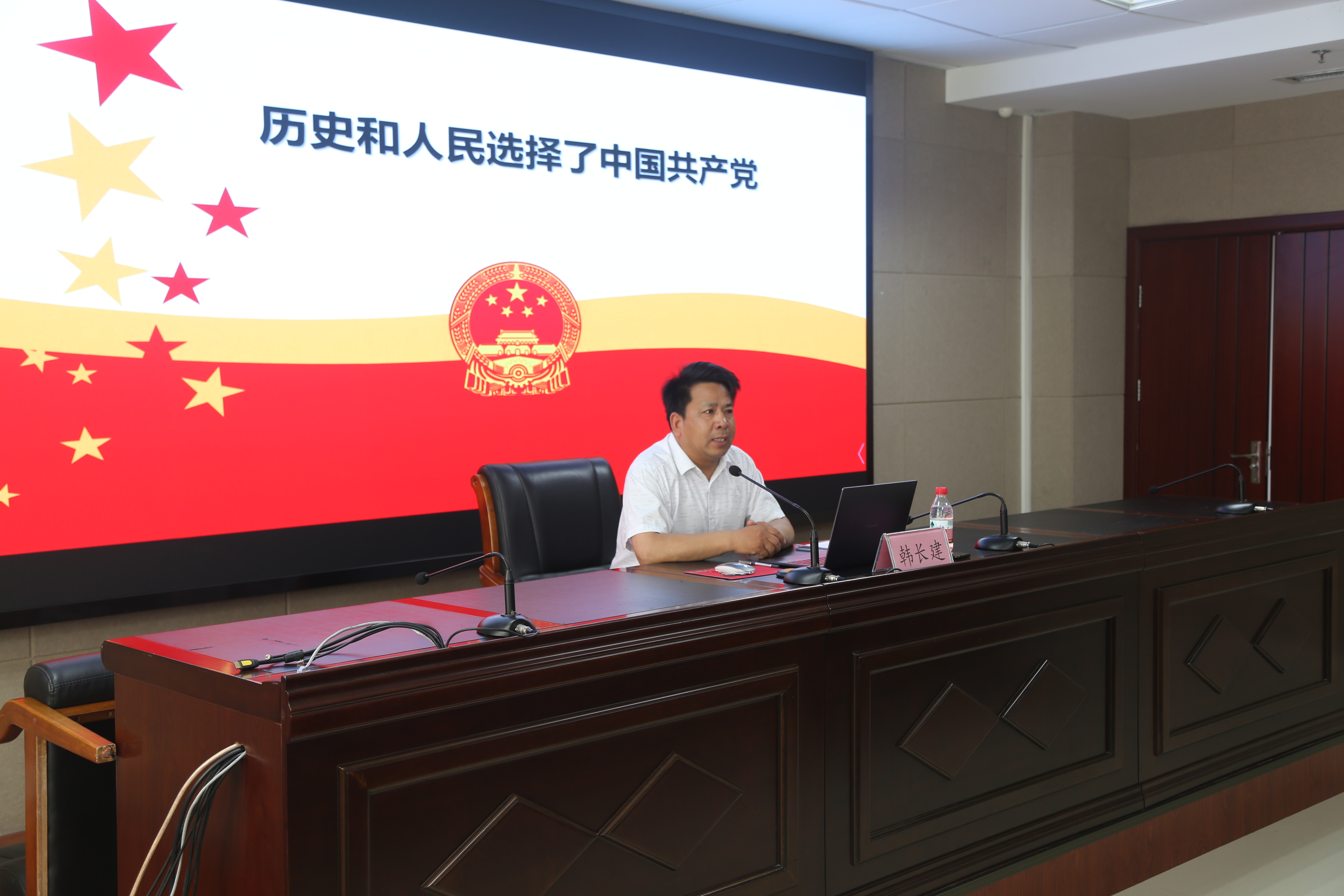 按照政数局党组开展党史学习教育工作部署,2021年6月2日下午,市政数局(公管办)党组成员韩长建副局长在开封市公共资源交易中心会议室为交易中心党支部全体党员上了一堂题为《历史和人民选择了中国共产党》专题党课。