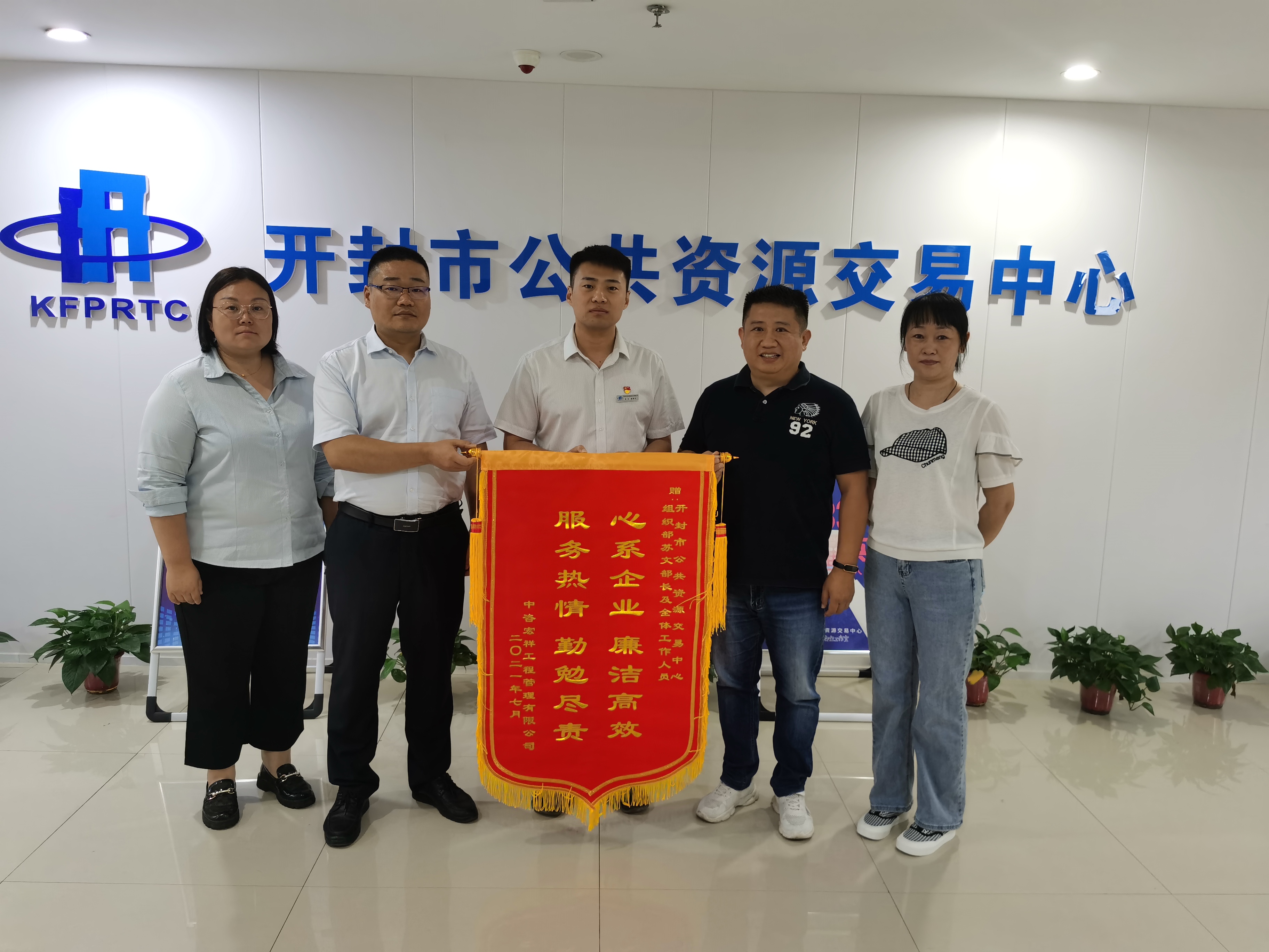 7月5日下午,中咨宏祥工程管理有限公司负责人将一面印有“心系企业、廉洁高效、服务热情、勤勉尽责”的锦旗送到中心,对开封市公共资源交易中心受理组织部工作人员高效解决该公司在进场交易时遇到的困难和问题所展现的务实工作态度和暖心服务表示感谢。