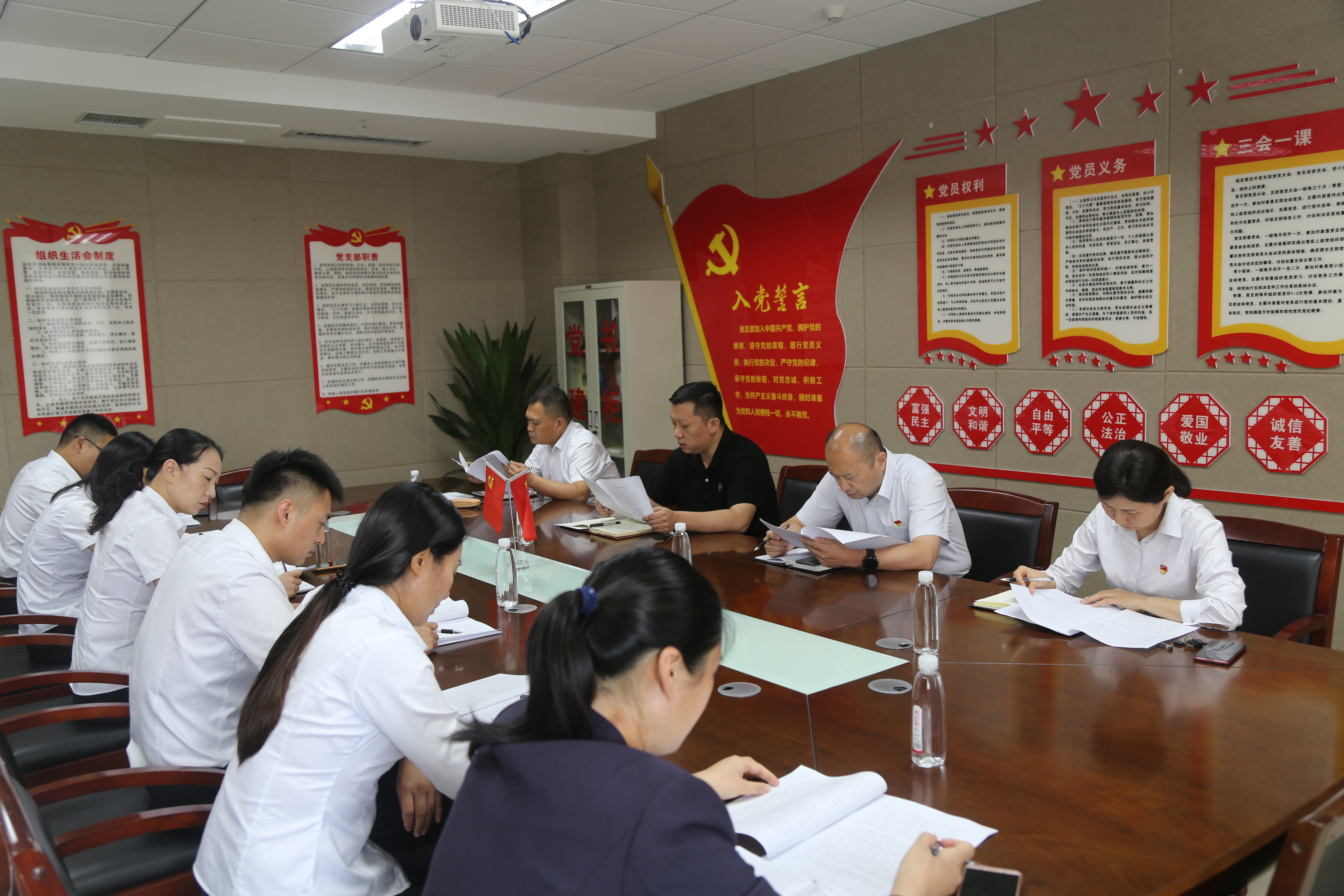 2021年7月26日下午,中心领导班子及各部门负责人在党建活动室集体学习《干好工作18法》,由李北辰总经理领学。