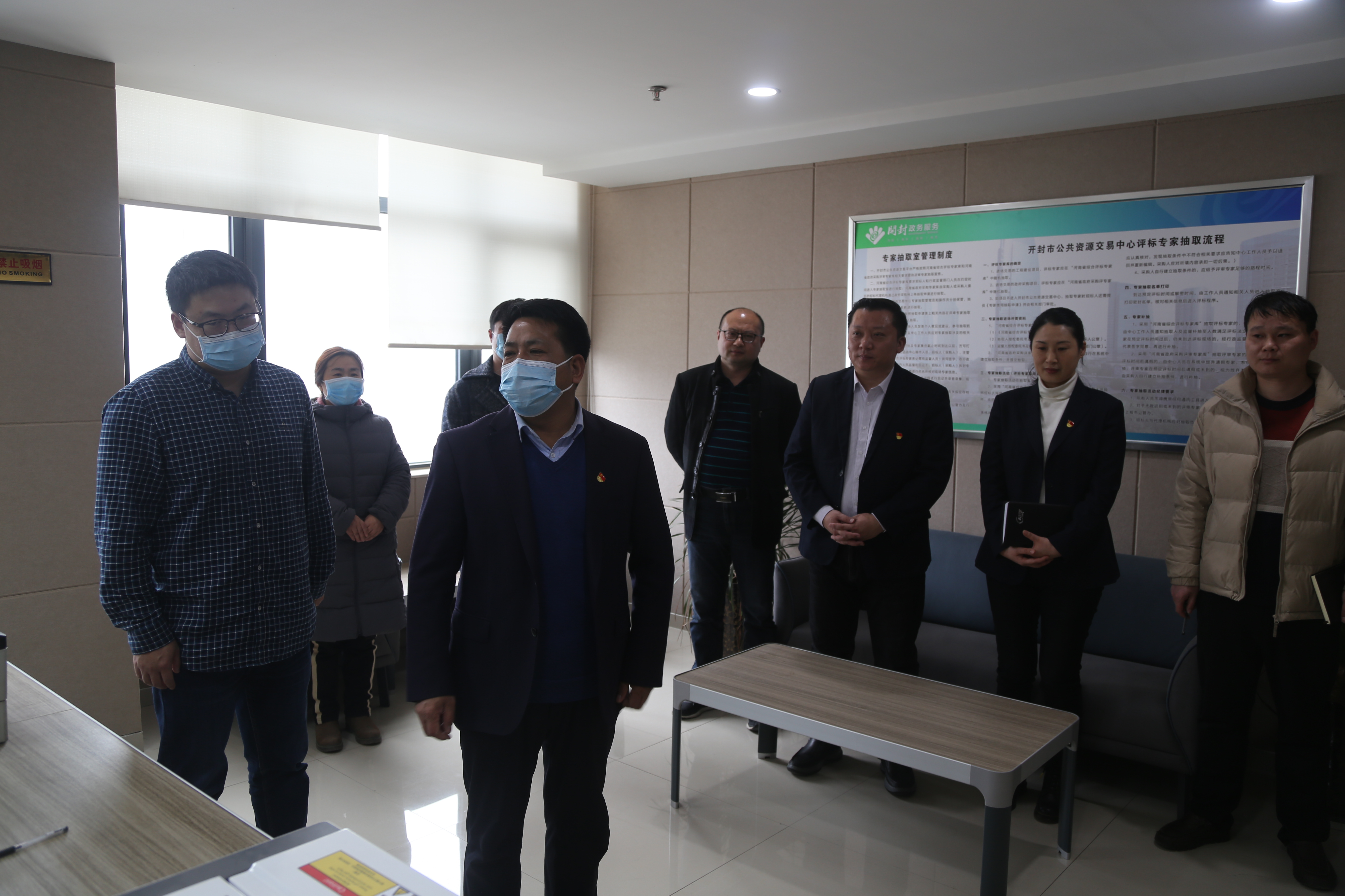 2月15日下午,市政务服务和大数据管理局副局长(市公管办副主任)韩长建、市公共资源交易服务处处长赵一铤到市公共资源交易中心就省综合评标专家库新系统启用、对接运行工作进行调研指导。