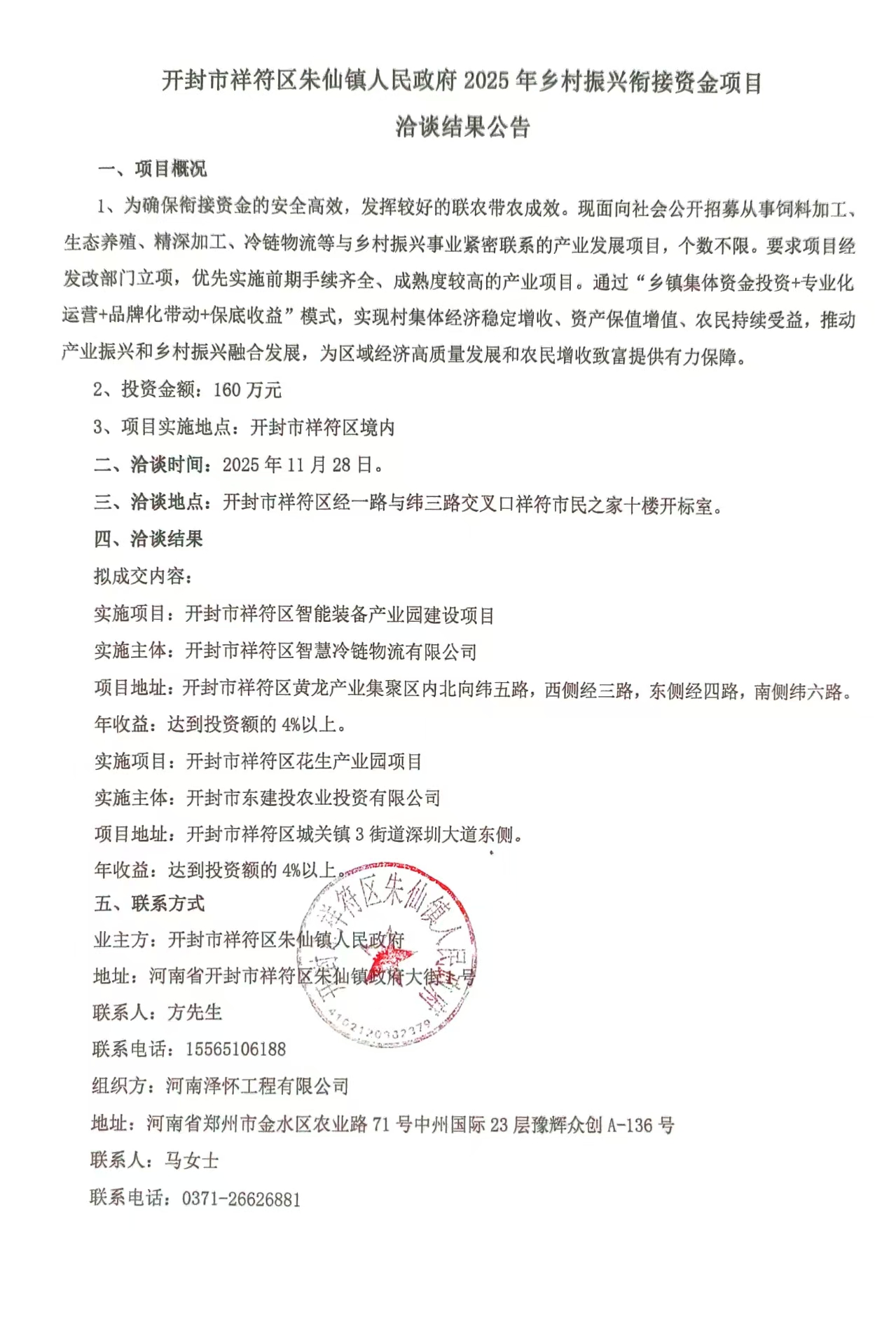 开封市祥符区朱仙镇人民政府2025年乡村振兴衔接资金项目