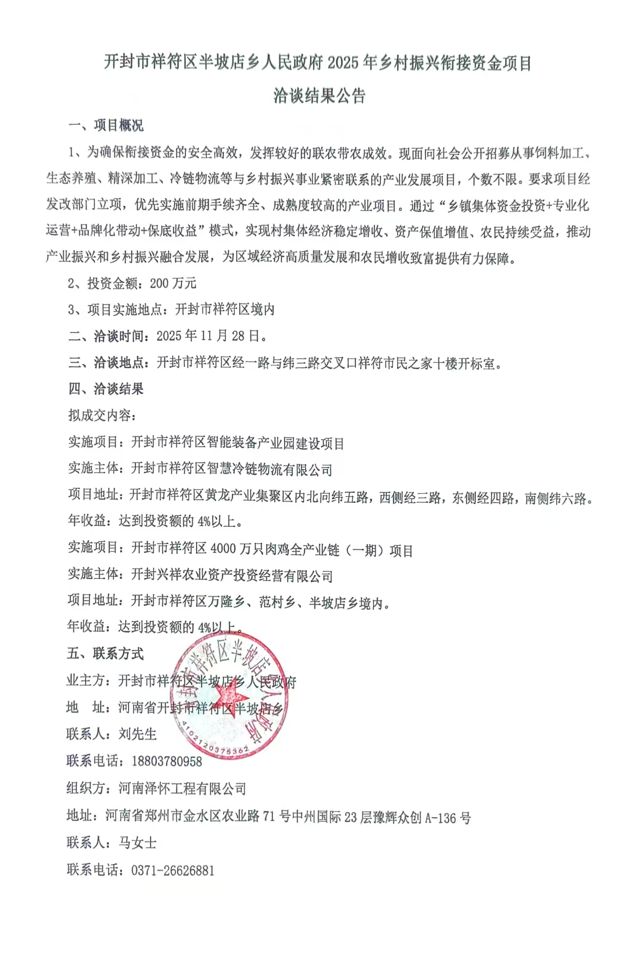 三、洽谈地点:开封市祥符区经一路与纬三路交叉口祥符市民之家十楼开标室。
