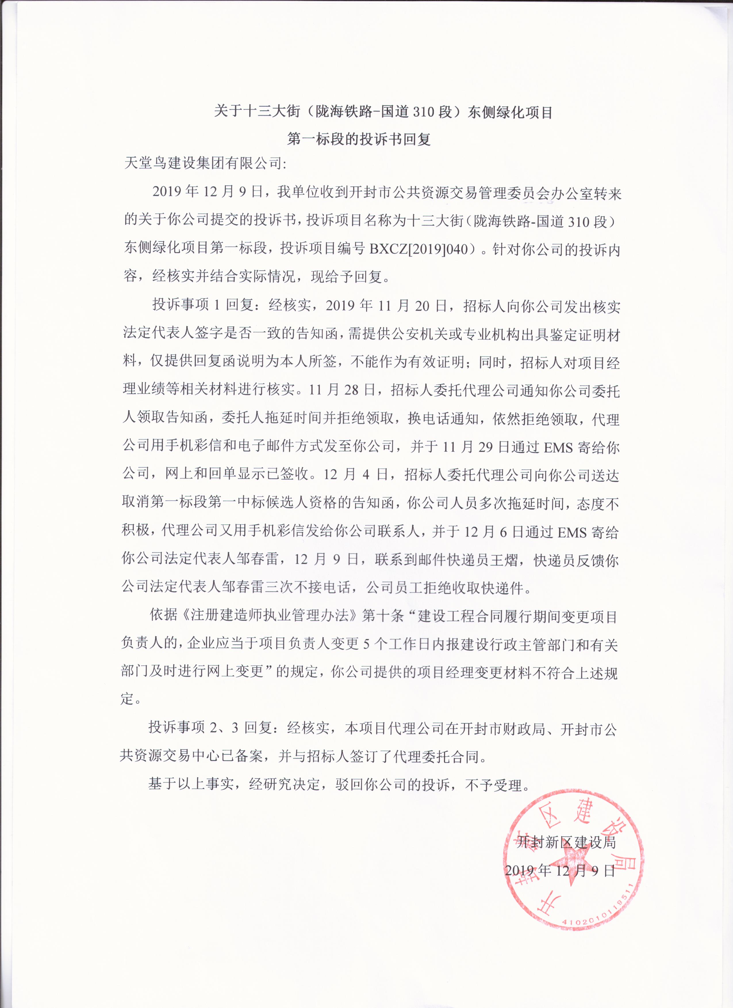 十三大街(陇海铁路-国道310段)东侧绿化项目第一标段投诉处理结果公示