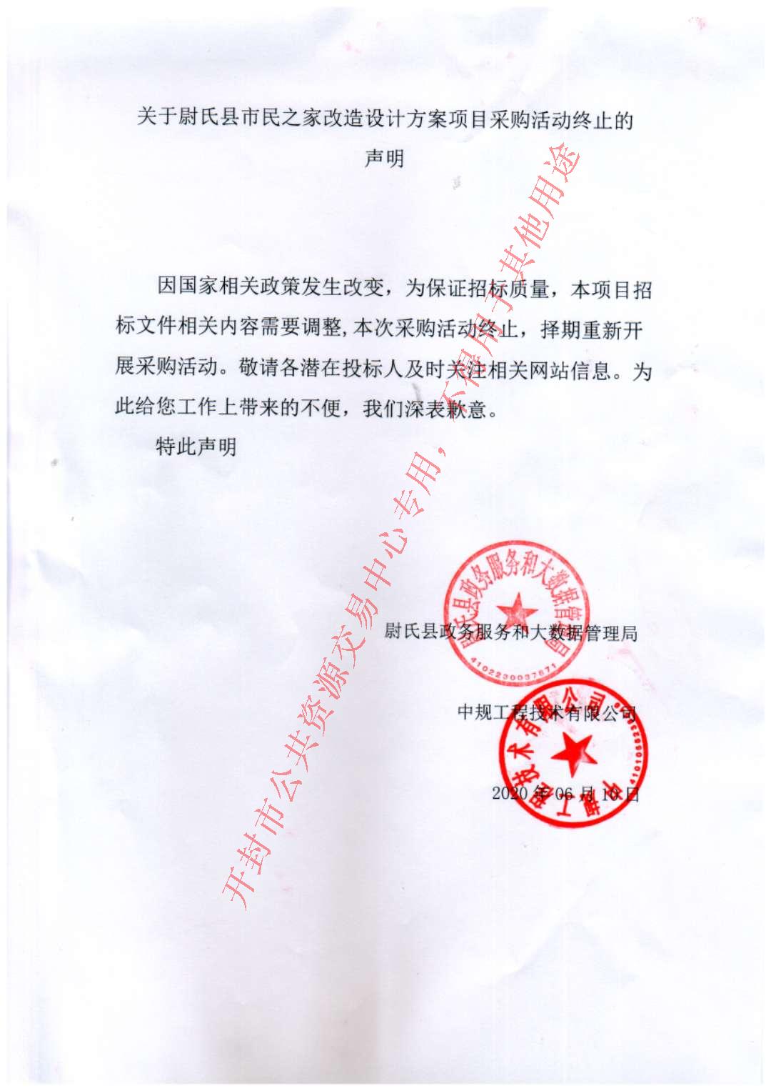 关于尉氏县市民之家改造设计方案项目采购活动终止的