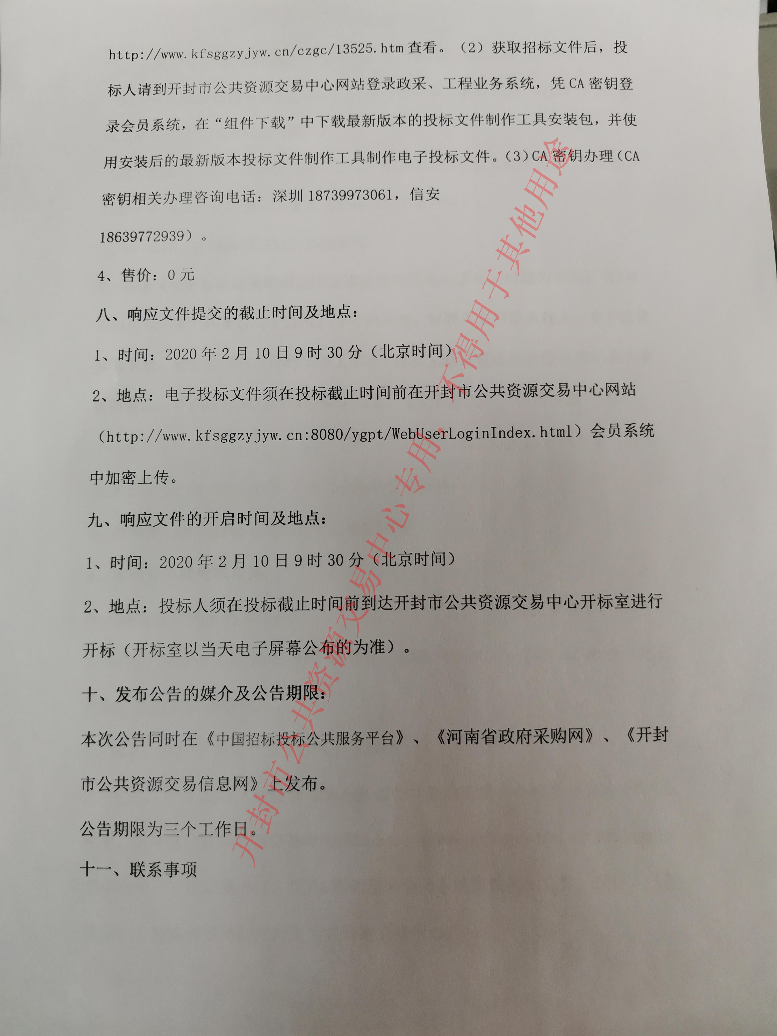 3、方式:(1)投标人应注册成为开封市公共资源交易中心网站会员并取得CA密钥,在开封市公共资源交易中心网站http://www.kfsggzyjyw.cn:8080/ygpt/登录政采、工程业务系统,凭CA密钥登录会员系统下载招标文件。投标人(供应商)系统操作手册在开封市公共资源交易中心网站http://www.kfsggzyjyw.cn/czgc/13525.htm查看。(2)获取招标文件后,投标人请到开封市公共资源交易中心网站登录政采、工程业务系统,凭CA密钥登录会员系统,在“组件下载”中下载最新版本的投标文件制作工具安装包,并使用安装后的最新版本投标文件制作工具制作电子投标文件。(3)CA密钥办理(CA密钥相关办理咨询电话:深圳18739973061,信安18639772939)。