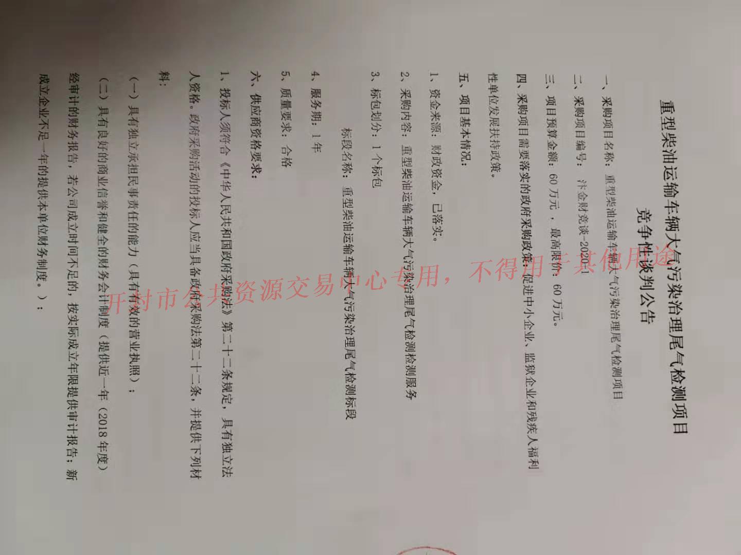 标段名称:重型柴油运输车辆大气污染治理尾气检测标段