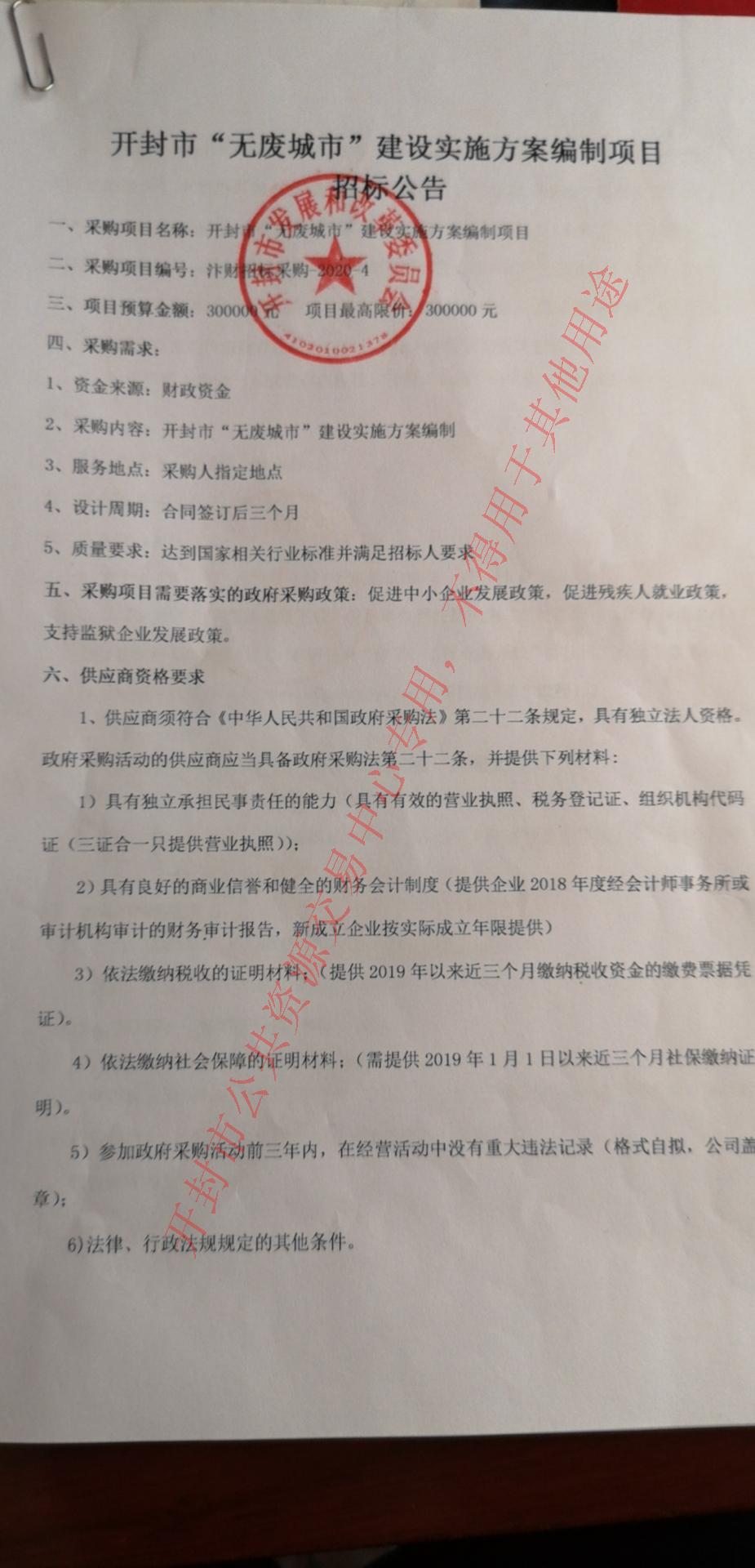 2、采购内容:开封市“无废城市”建设实施方案编制