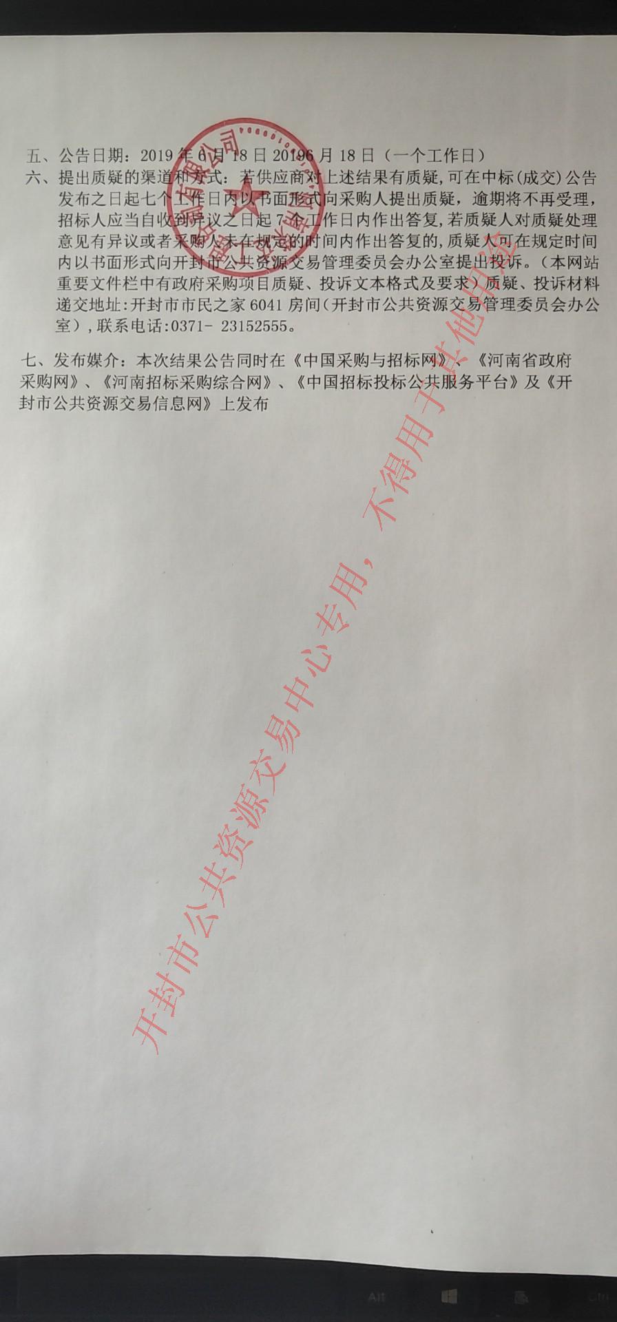 七、发布媒介:本次结果公告同时在《中国采购与招标网》、《河南省政府采购网》、《河南招标采购综合网》、《中国招标投标公共服务平台》及《开封市公共资源交易信息网》上发布