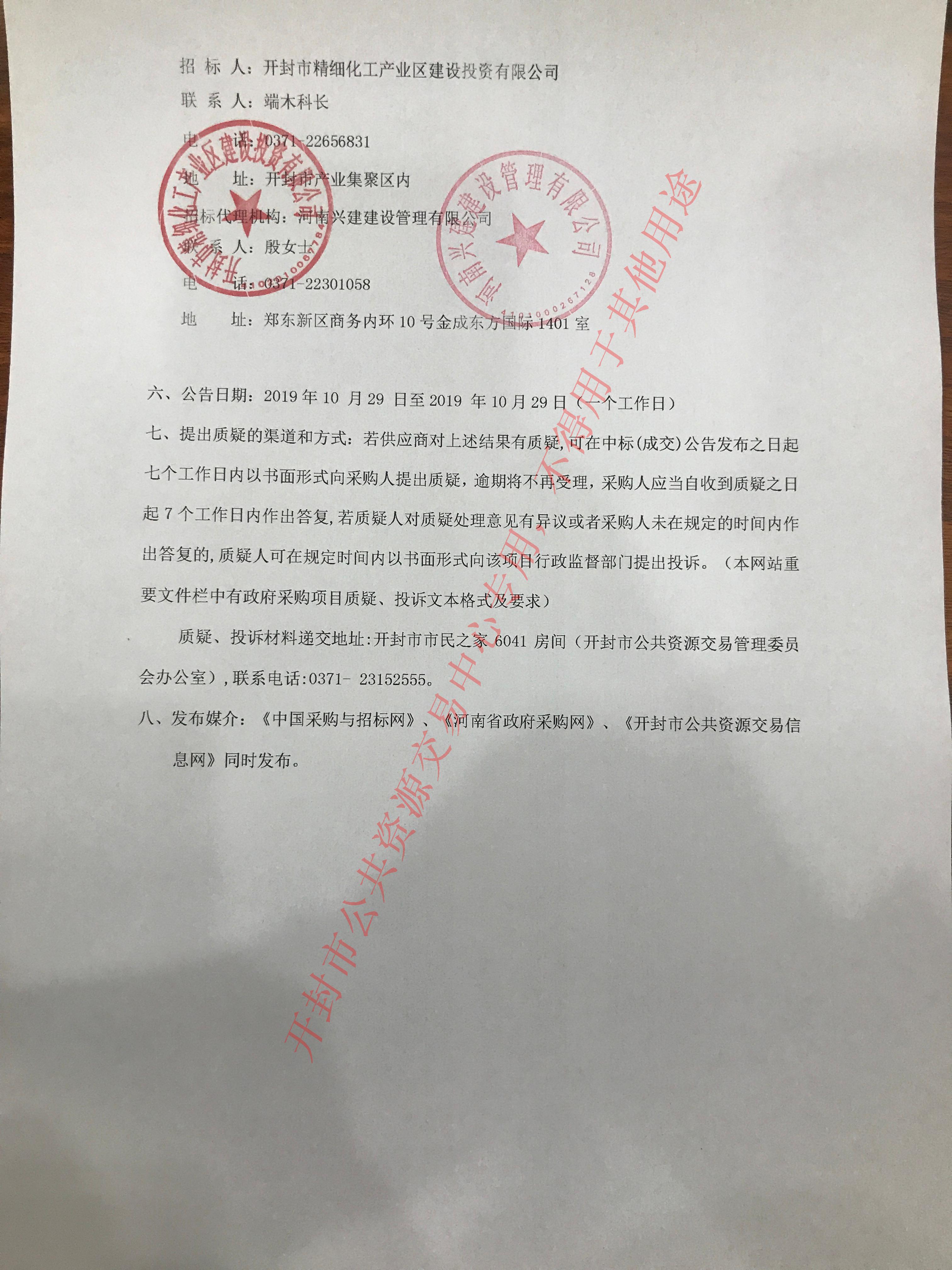 招 标 人:开封市精细化工产业区建设投资有限公司