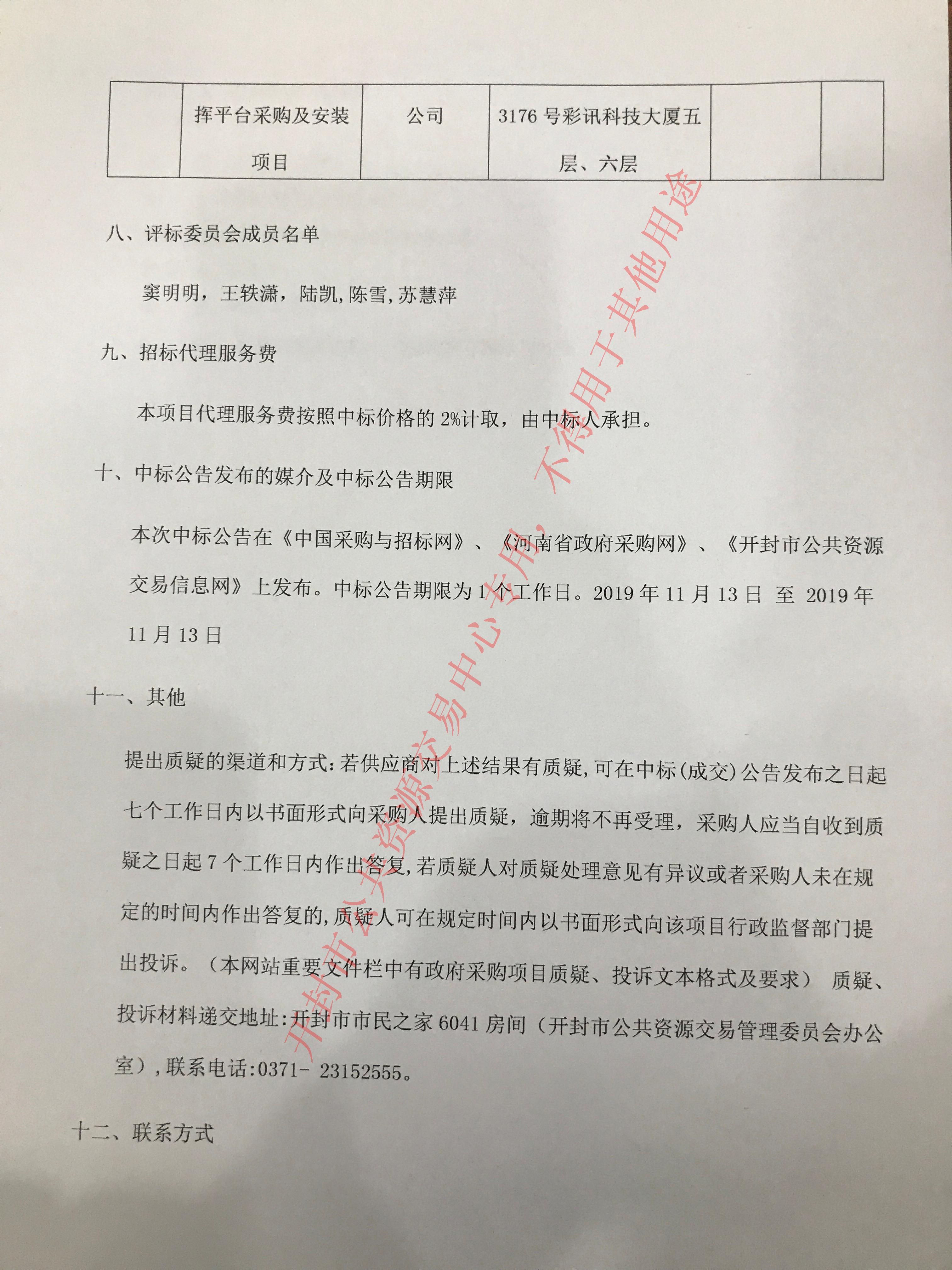 本次中标公告在《中国采购与招标网》、《河南省政府采购网》、《开封市公共资源交易信息网》上发布。中标公告期限为1个工作日。2019年11月13日 至 2019年11月13日 |