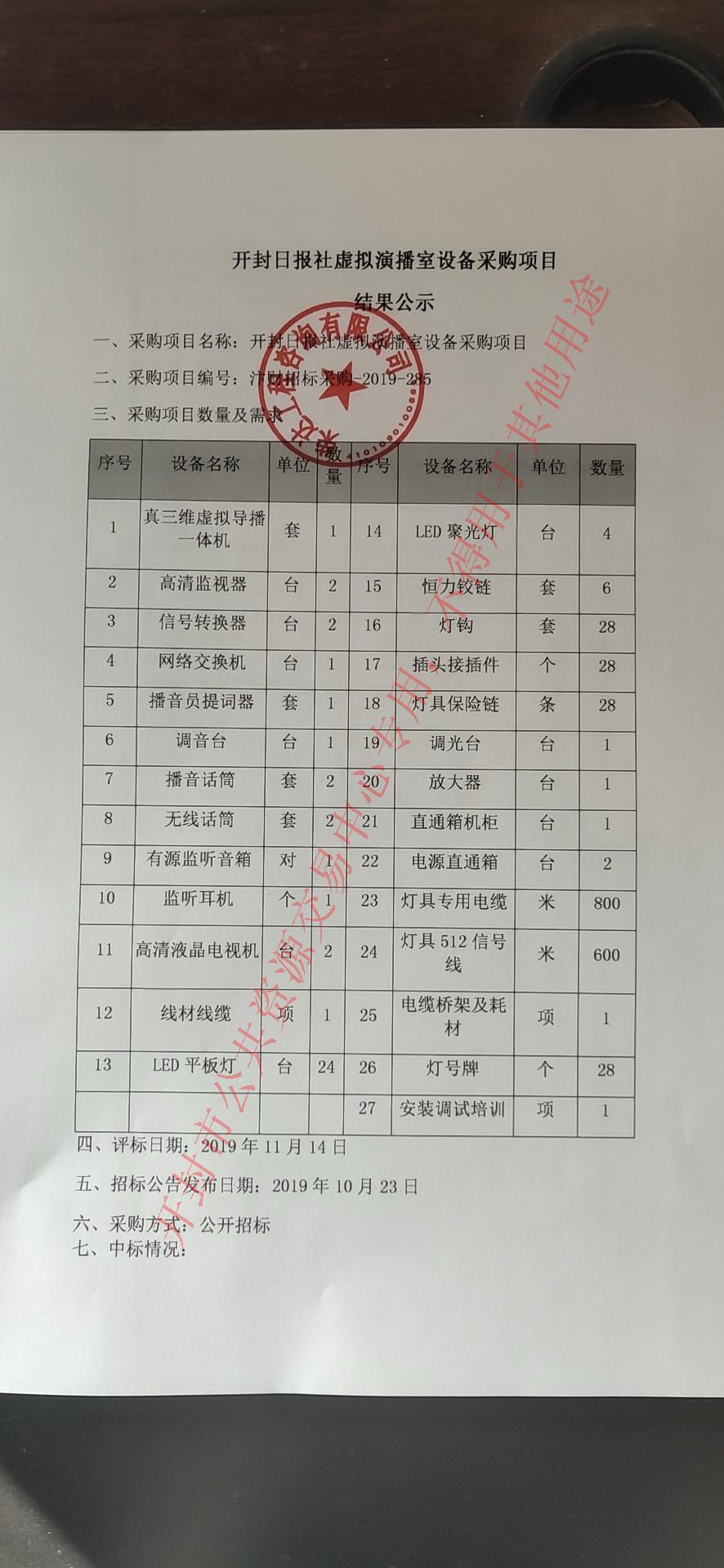 一、采购项目名称:开封日报社虚拟演播室设备采购项目