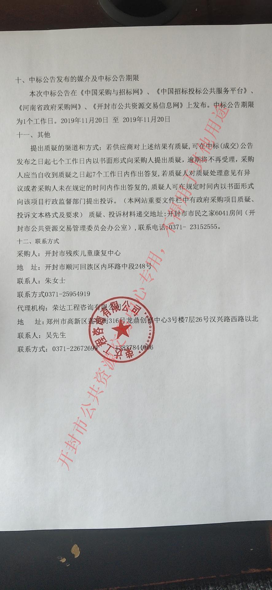 标段名称:开封市残疾儿童康复中心康复特教器材购置项目