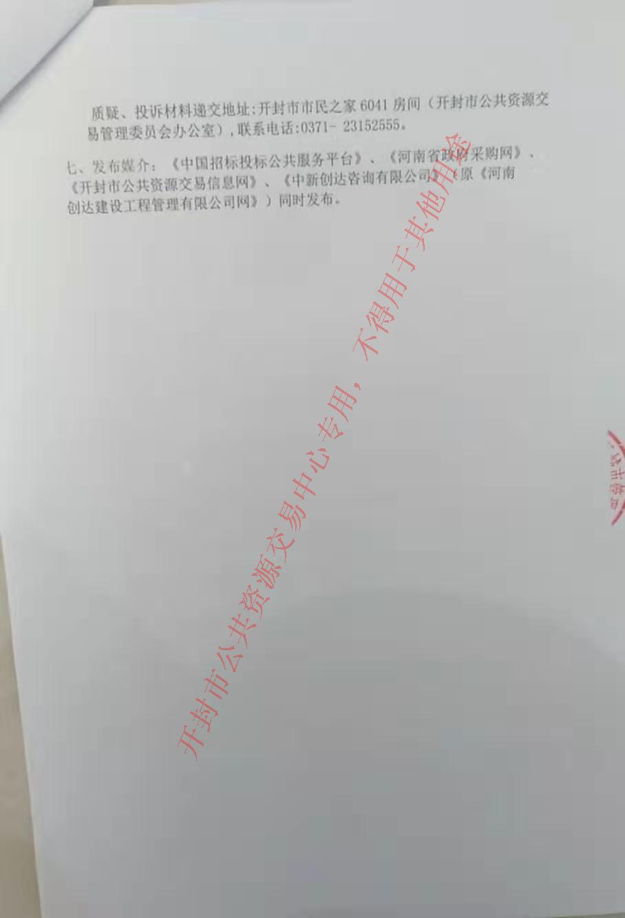 七、发布媒介:《中国招标投标公共服务平台》、《河南省政府采购网》、《开封市公共资源交易信息网》、《中新创达咨询有限公司》(原《河南创达建设工程管理有限公司网》)同时发布。