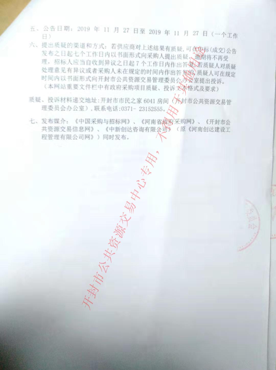 七、发布媒介:《中国采购与招标网》、《河南省政府采购网》、《开封市公共资源交易信息网》、《中新创达咨询有限公司》(原《河南创达建设工程管理有限公司网》)同时发布。