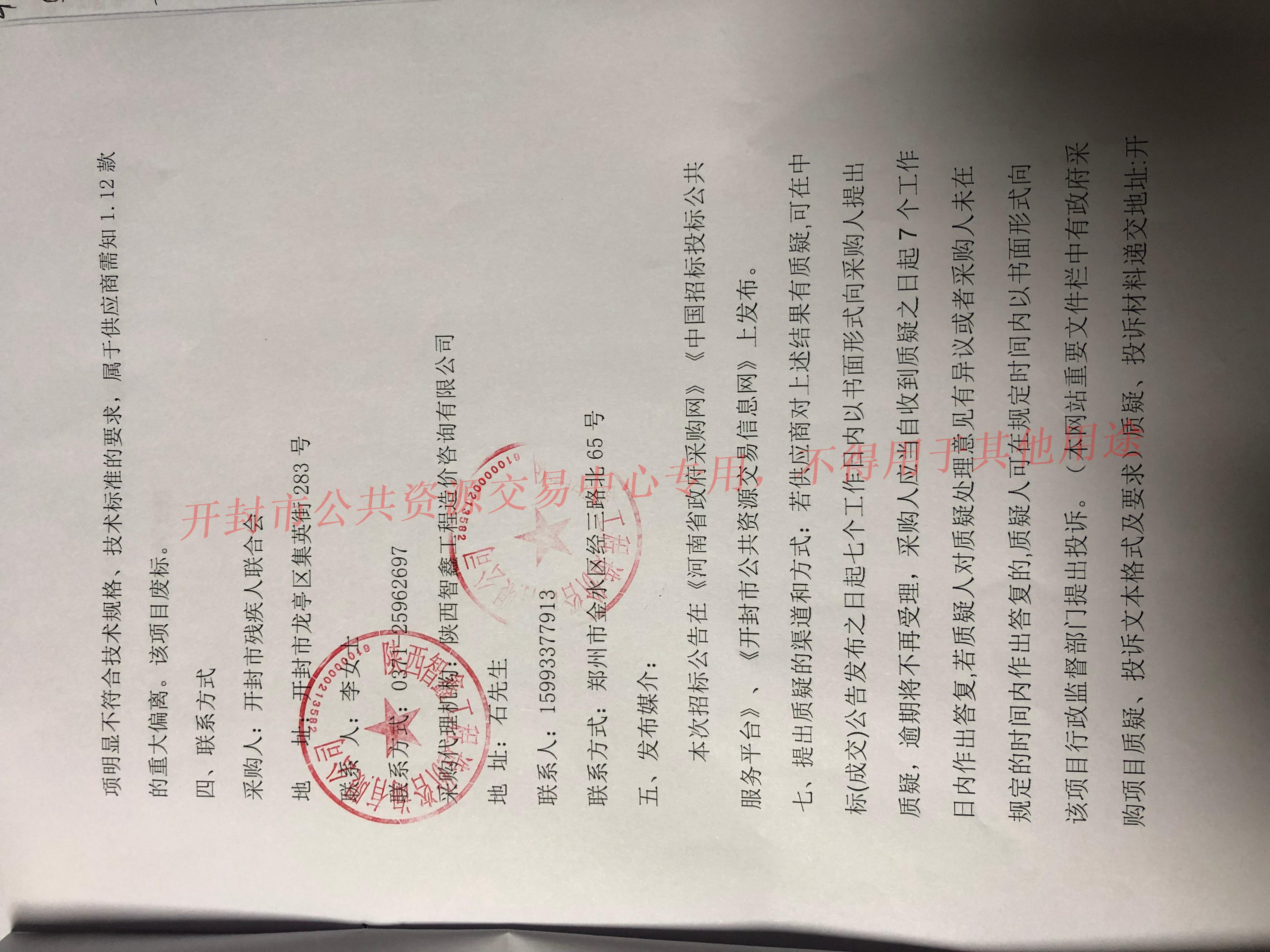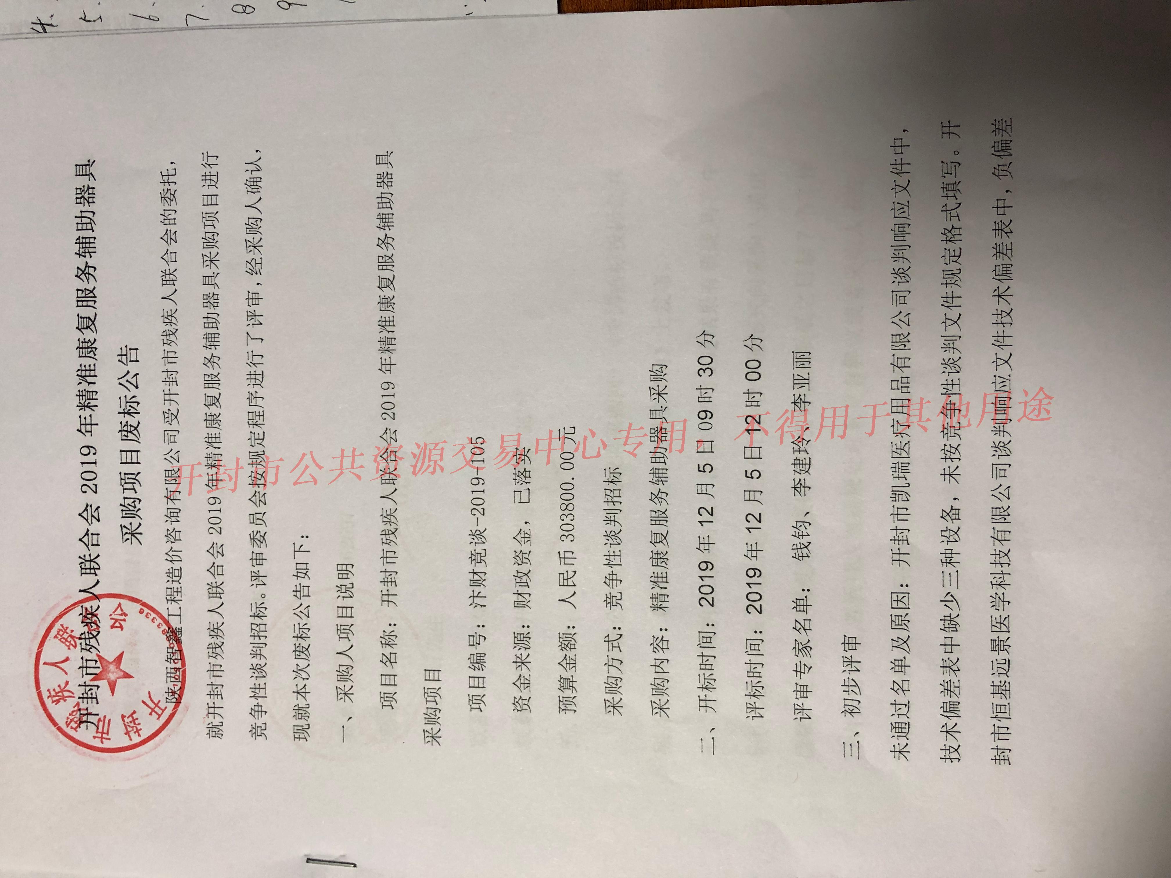 开封市残疾人联合会2019年精准康复服务辅助器具采购项目废标公告