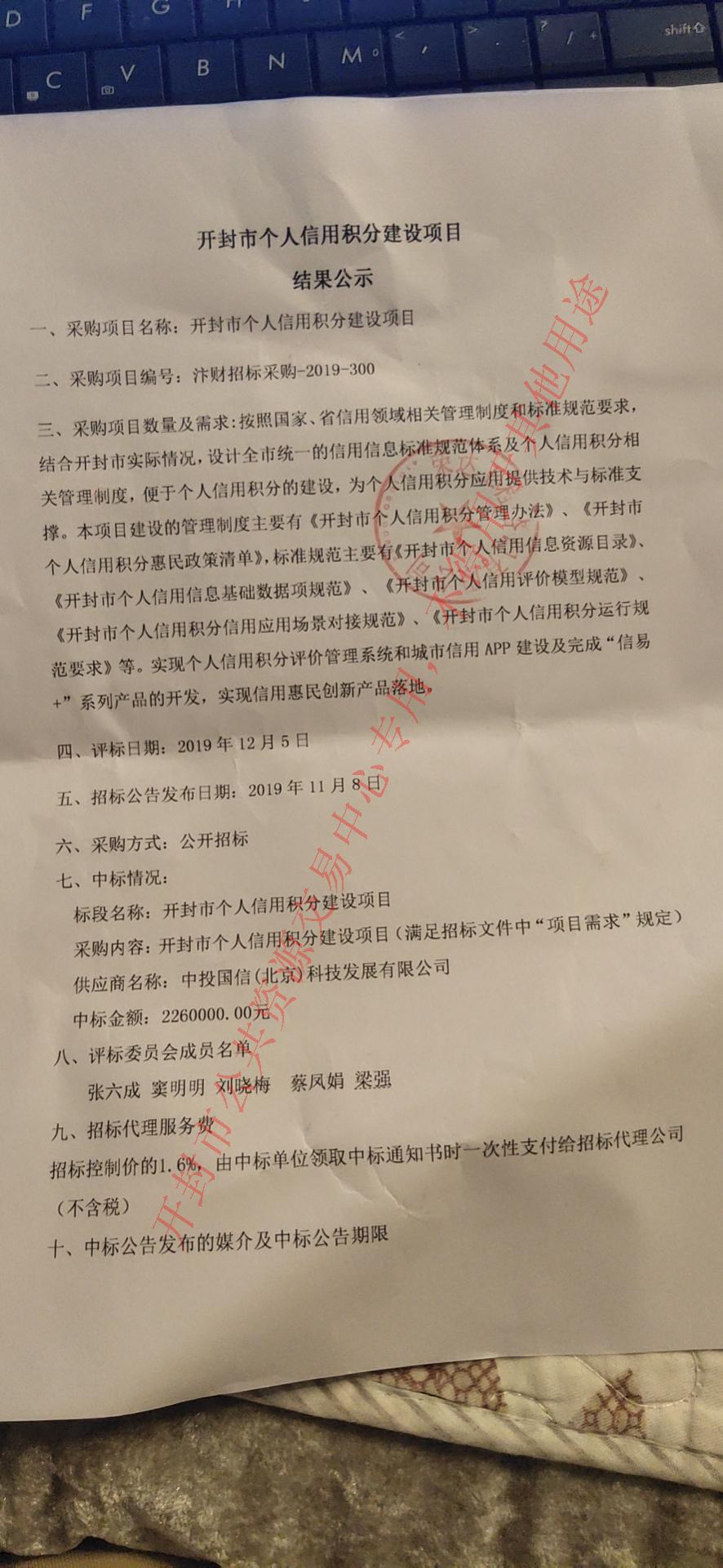 三、采购项目数量及需求:按照国家、省信用领域相关管理制度和标准规范要求,结合开封市实际情况,设计全市统一的信用信息标准规范体系及个人信用积分相关管理制度,便于个人信用积分的建设,为个人信用积分应用提供技术与标准支撑。本项目建设的管理制度主要有《开封市个人信用积分管理办法》、《开封市个人信用积分惠民政策清单》,标准规范主要有《开封市个人信用信息资源目录》、《开封市个人信用信息基础数据项规范》、《开封市个人信用评价模型规范》、《开封市个人信用积分信用应用场景对接规范》、《开封市个人信用积分运行规范要求》等。实现个人信用积分评价管理系统和城市信用APP建设及完成“信易+”系列产品的开发,实现信用惠民创新产品落地。