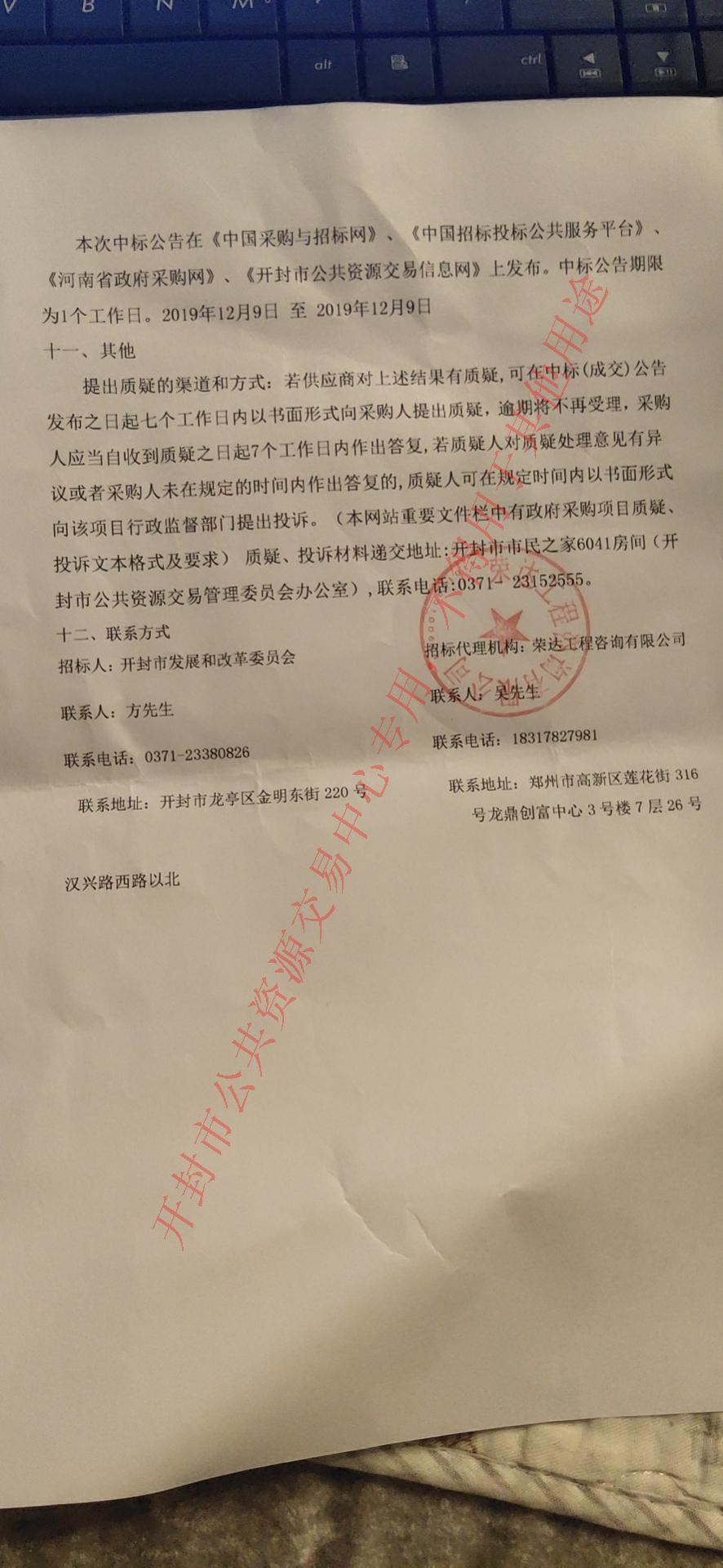 本次中标公告在《中国采购与招标网》、《中国招标投标公共服务平台》、《河南省政府采购网》、《开封市公共资源交易信息网》上发布。中标公告期限为1个工作日。2019年12月10日 至 2019年12月10日