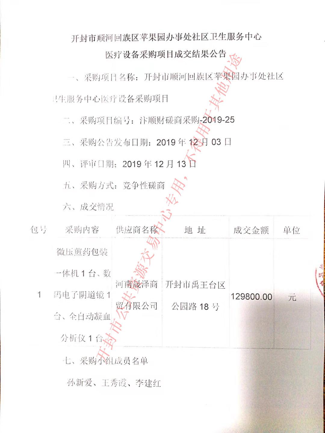 招 标 人:开封市顺河回族区苹果园办事处社区卫生服务中心