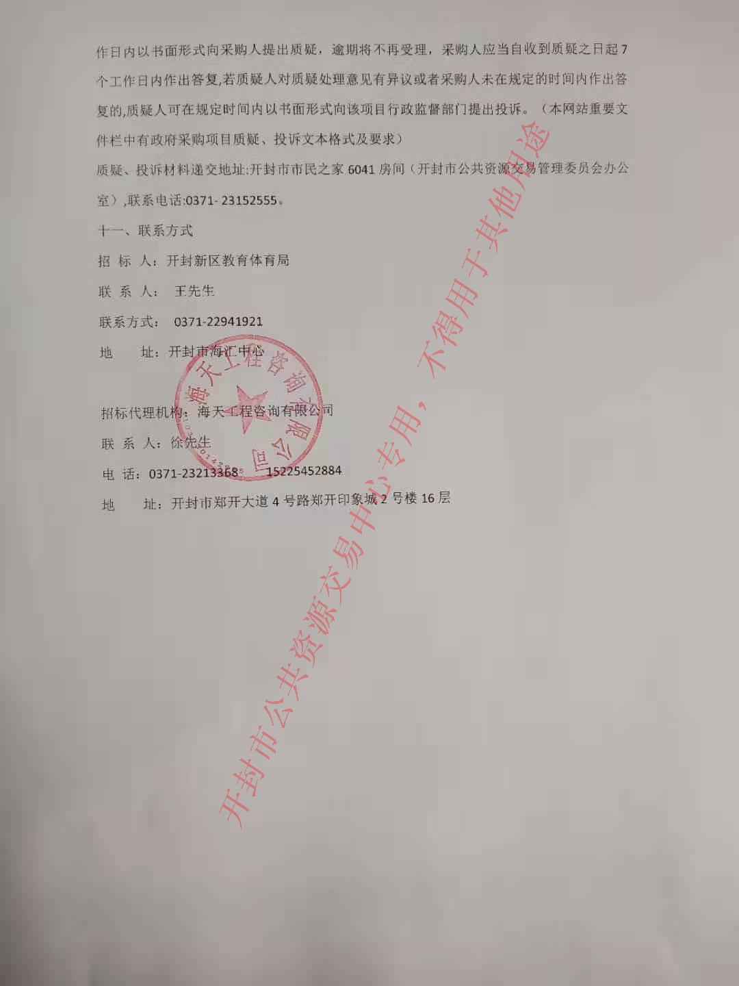 质疑、投诉材料递交地址:开封市市民之家6041房间(开封市公共资源交易管理委员会办公室),联系电话:0371- 23152555。