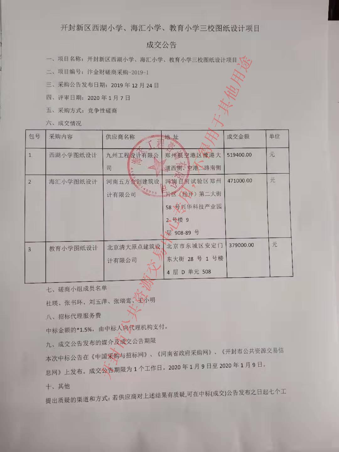 本次中标公告在《中国采购与招标网》、《河南省政府采购网》、《开封市公共资源交易信息网》上发布。成交公告期限为1个工作日。2020年1月9日至2020年1月9日。