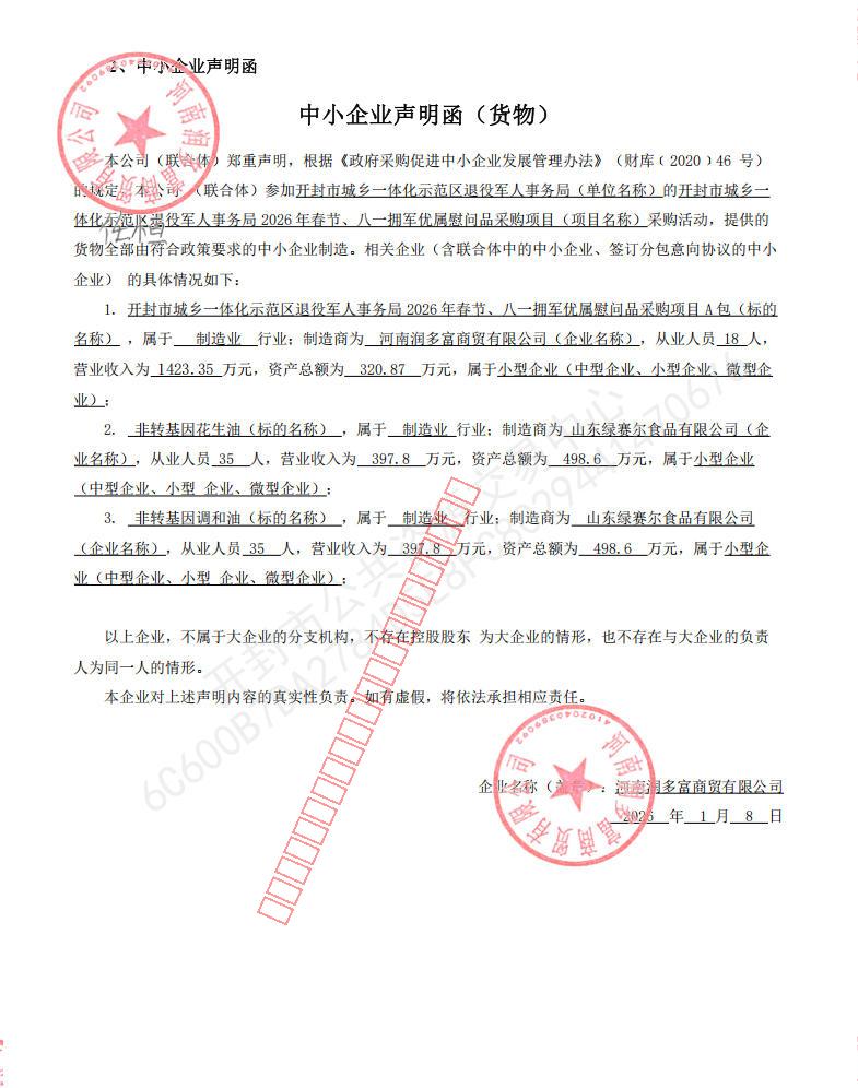开封市城乡一体化示范区退役军人事务局2026年春节、八一拥军优属慰问品采购项目-A包中标公告