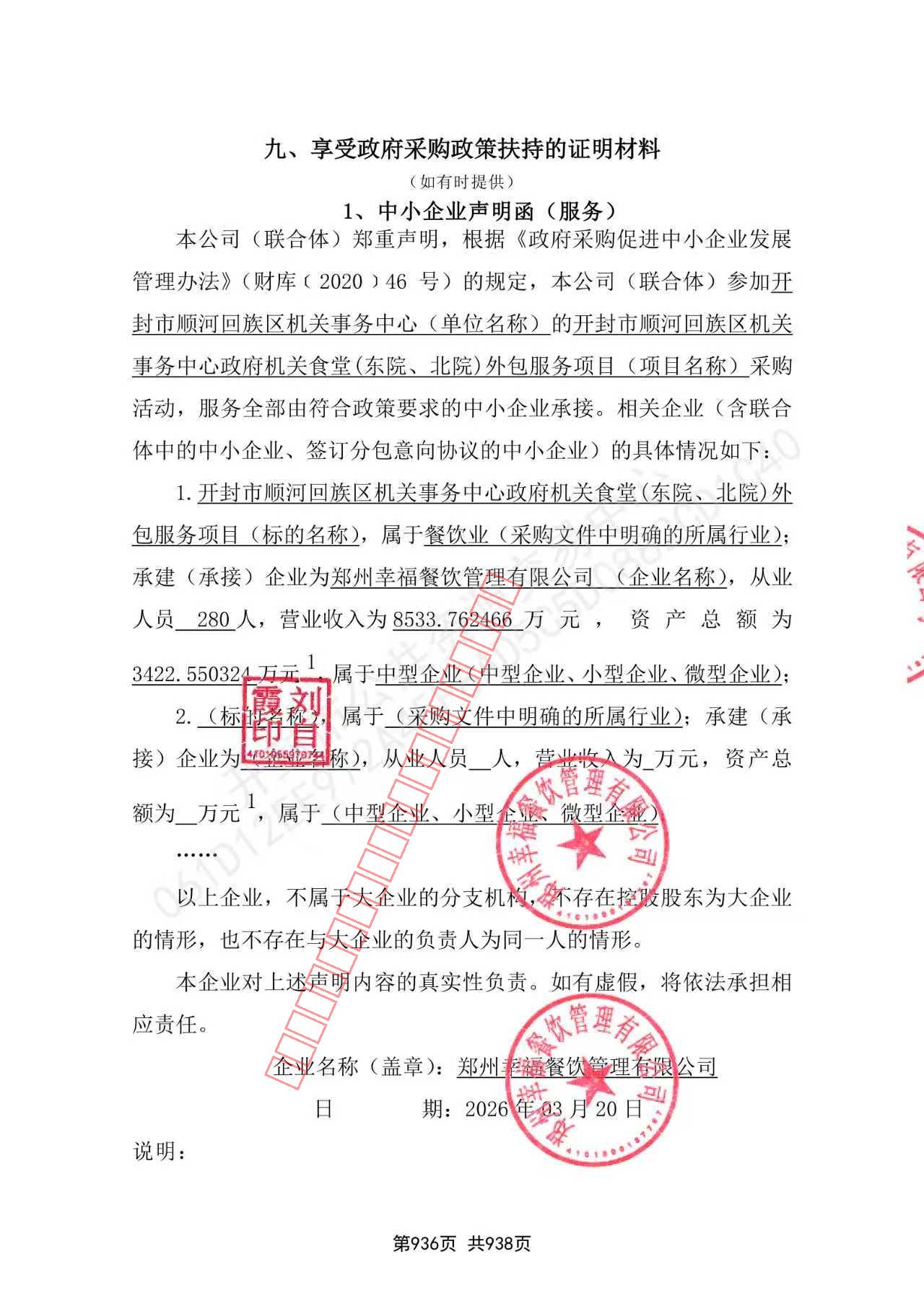 开封市顺河回族区机关事务中心政府机关食堂(东院、北院)外包服务项目第一包段-中标公告